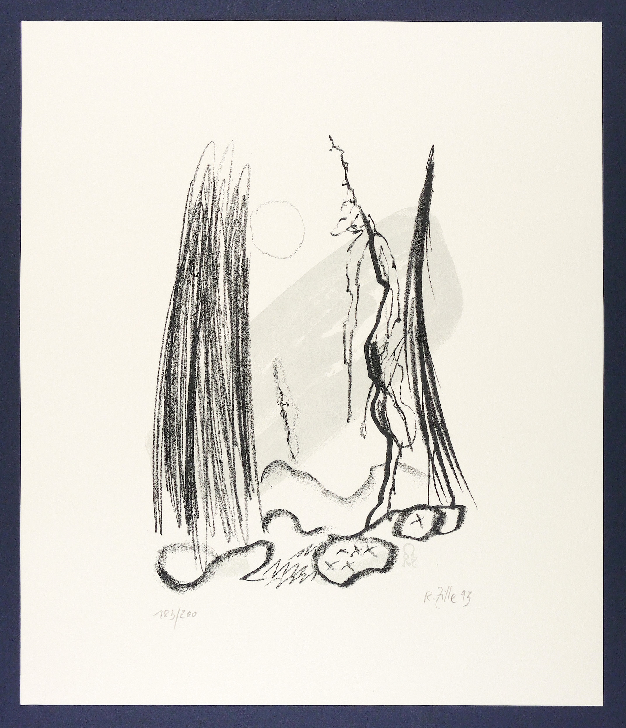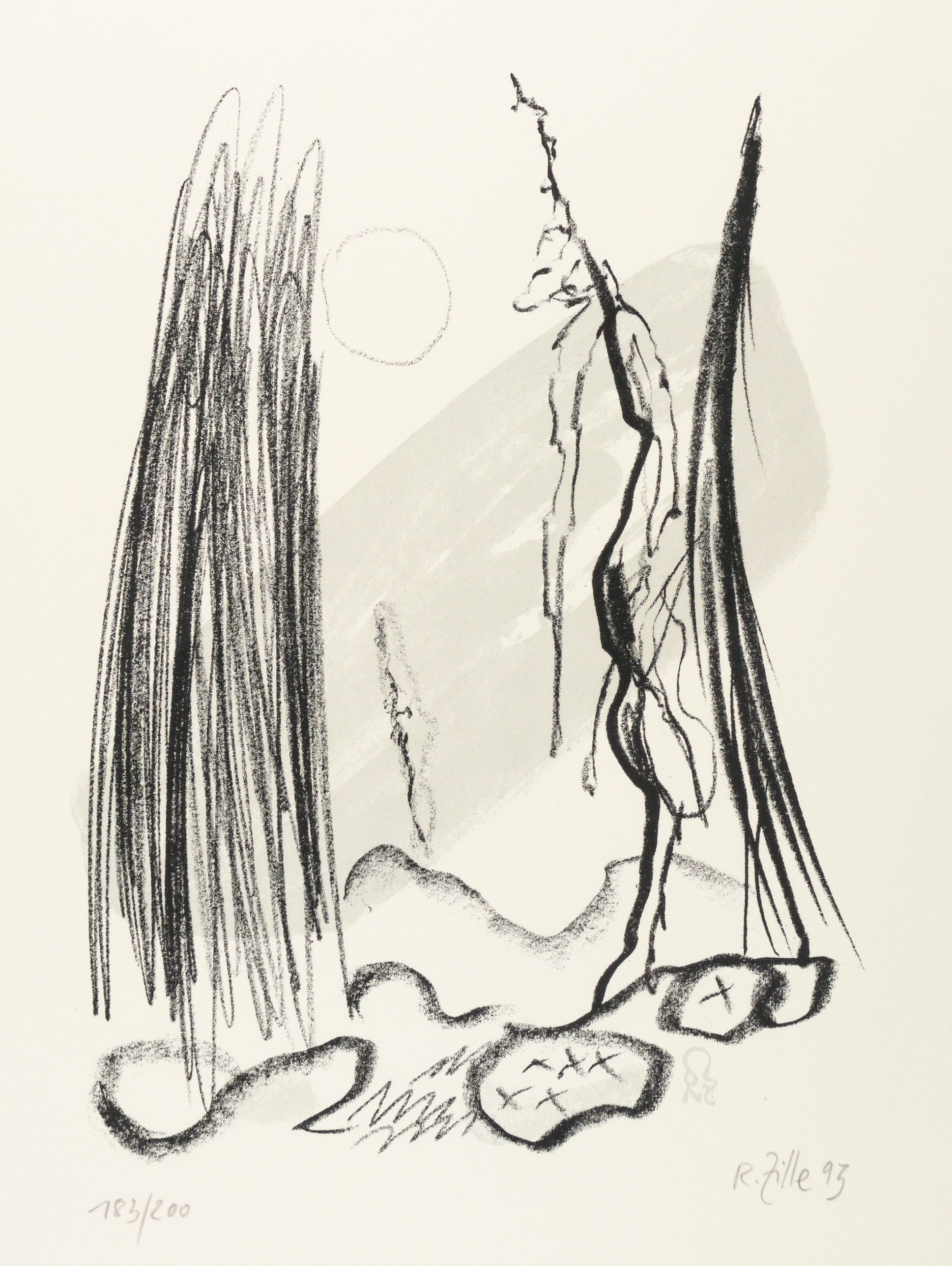 1993. Farbsiebdruck / Farbserigrafie, in 2 Farben, auf Büttenkarton. – Originale Künstlergrafik, von Rainer Zille. – Auflage Exemplar Nr. 183/200. – 32,5 x 24,0 cm (Darstellung / Stein), 49 x 42 cm (Blatt).