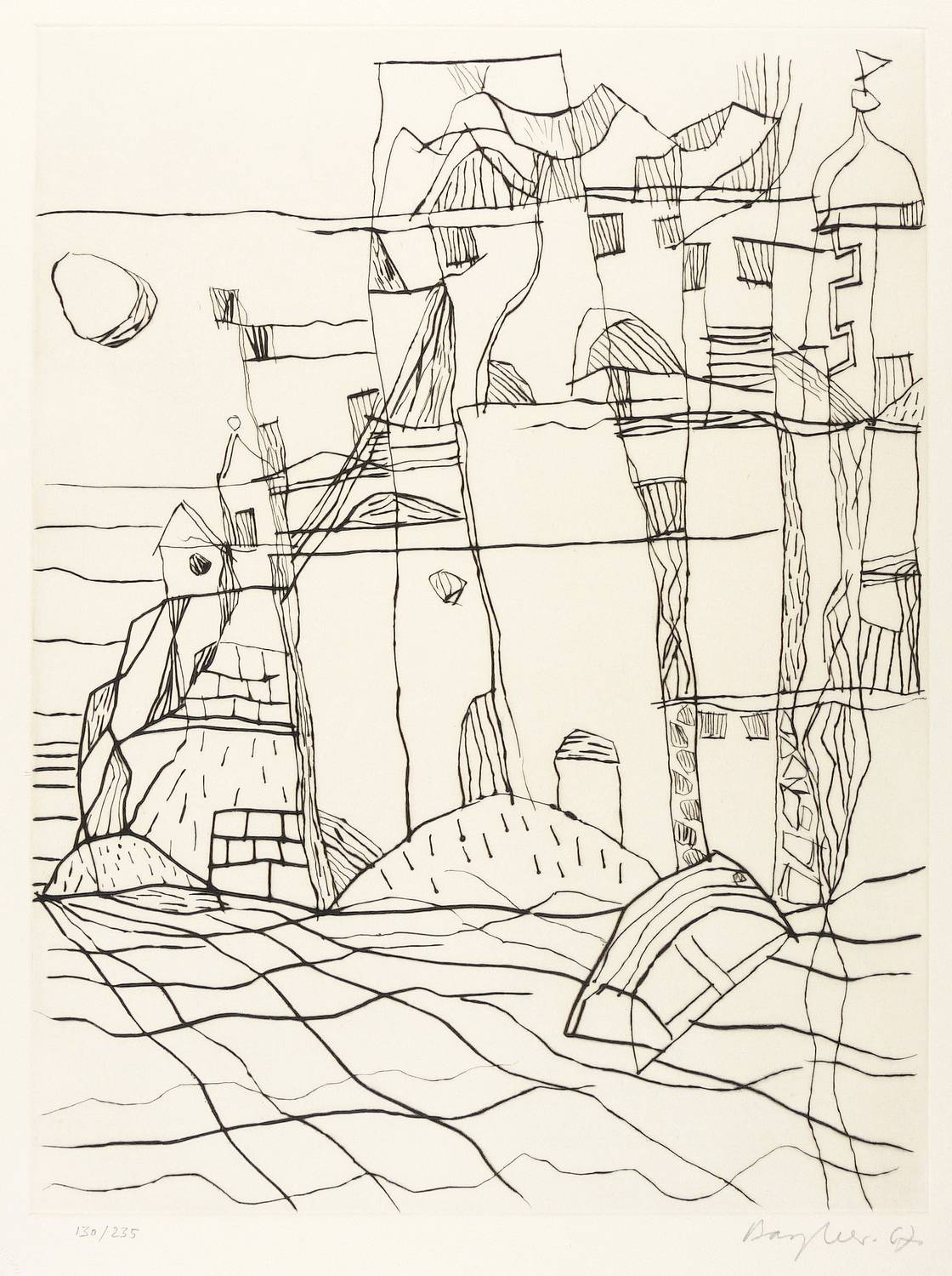 1967. Radierung / Kaltnadel, auf Maschinenbütten. – Originale Künstlergrafik, von Eduard Bargheer. – Auflage Exemplar Nr. 130/235. – 42,2 x 31,9 cm (Darstellung / Platte), 51 x 40 cm (Blatt).