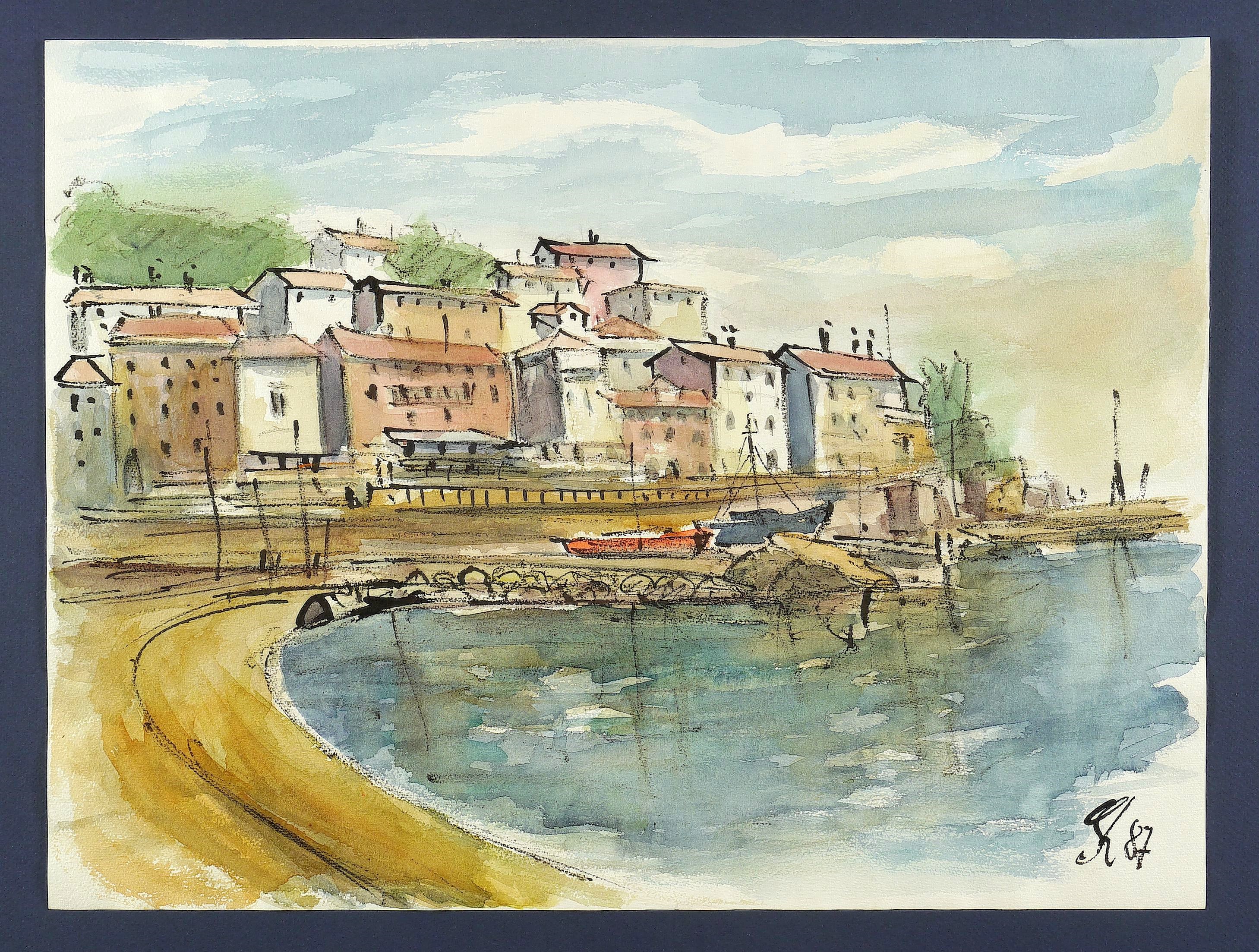 1987. Aquarell, auf Torchon-Maschinenbütten. – Originale Künstlergrafik, von Gerhard Kliemann. – Unikat. – 35,8 x 47,7 cm (Darstellung / Blatt).