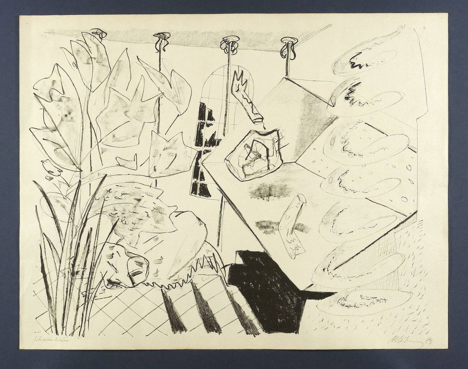 1983. Lithografie / Kreidelithografie, in Schwarz, auf hartem hellchamois Velin. – Originale Künstlergrafik, von Helge Leiberg. – 45,0 x 59,0 cm (Darstellung / Druckbild), 50 x 63 cm (Blatt).