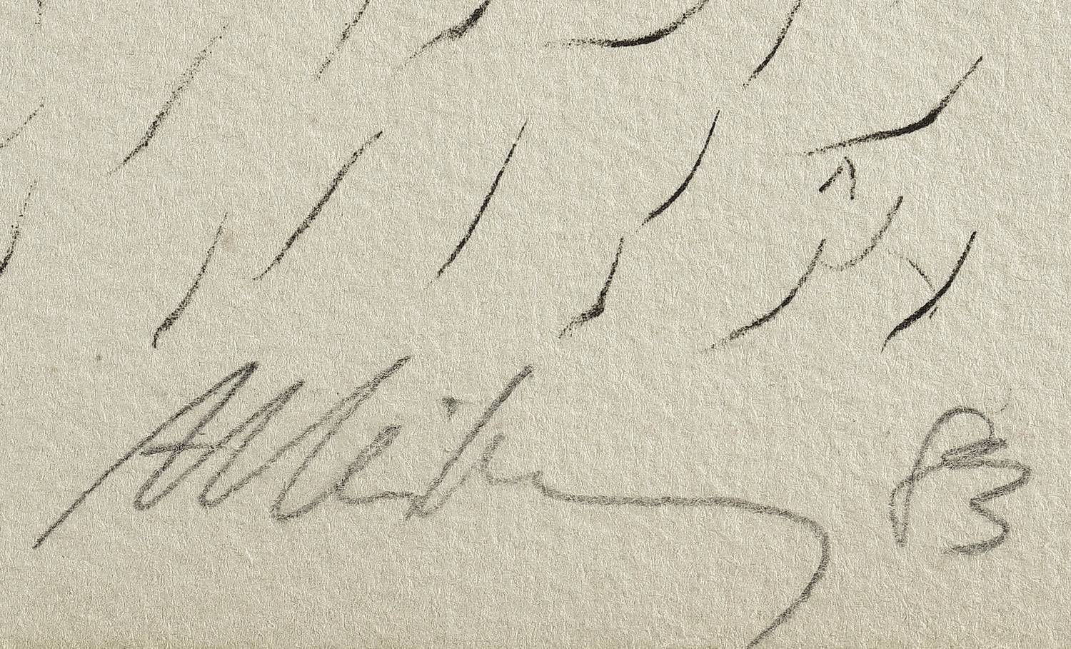 Rechts unten in Bleistift signiert und datiert. – Papier etwas gegilbt, lichtrandig. Blattrand etwas knickspurig. Verso Reste einer ehemaligen Montierung. Die Kanten etwas bestoßen. Reißzwecklöchlein. Mäßig guter Zustand.
