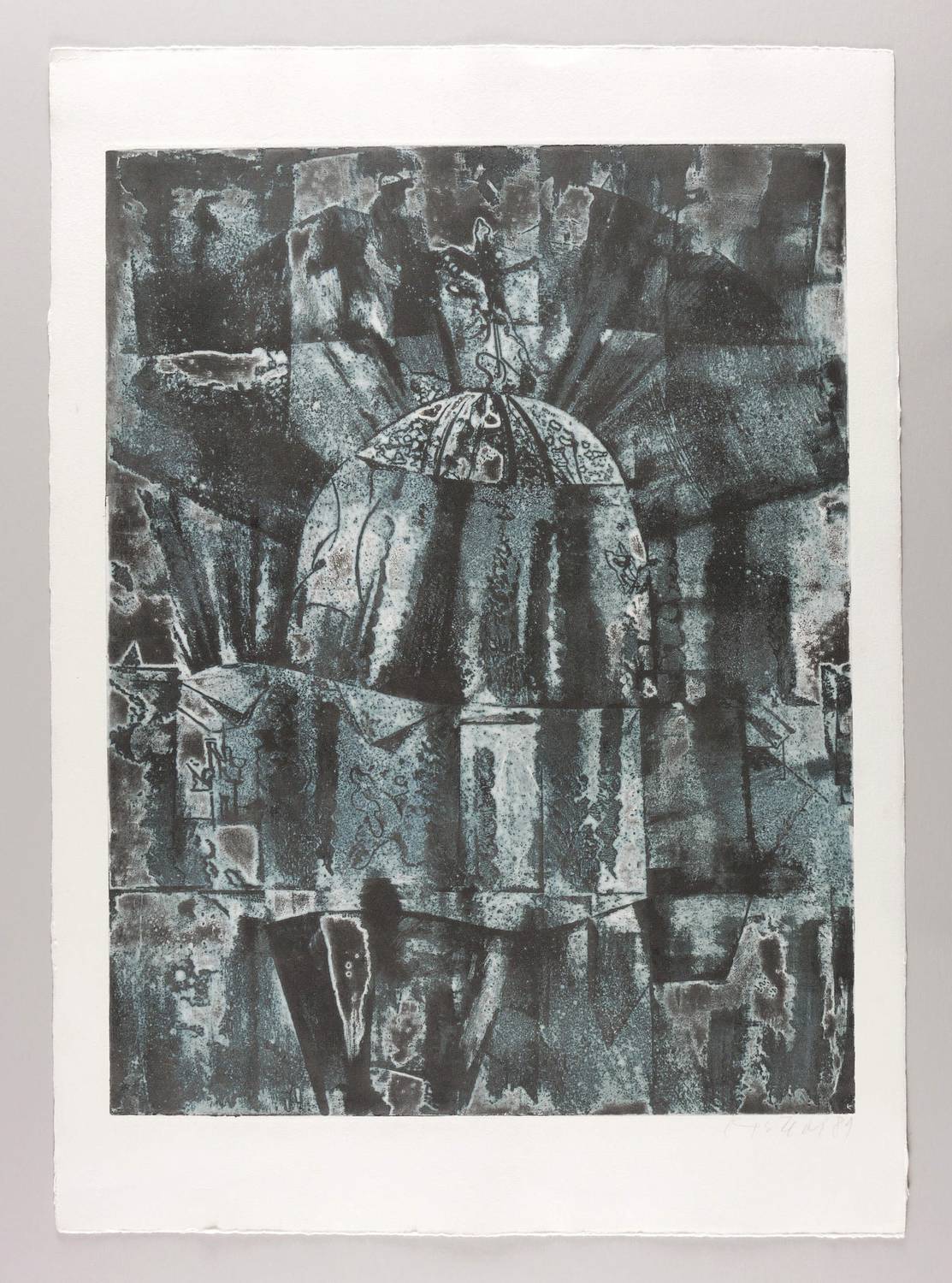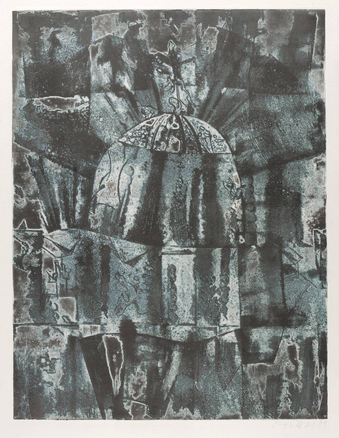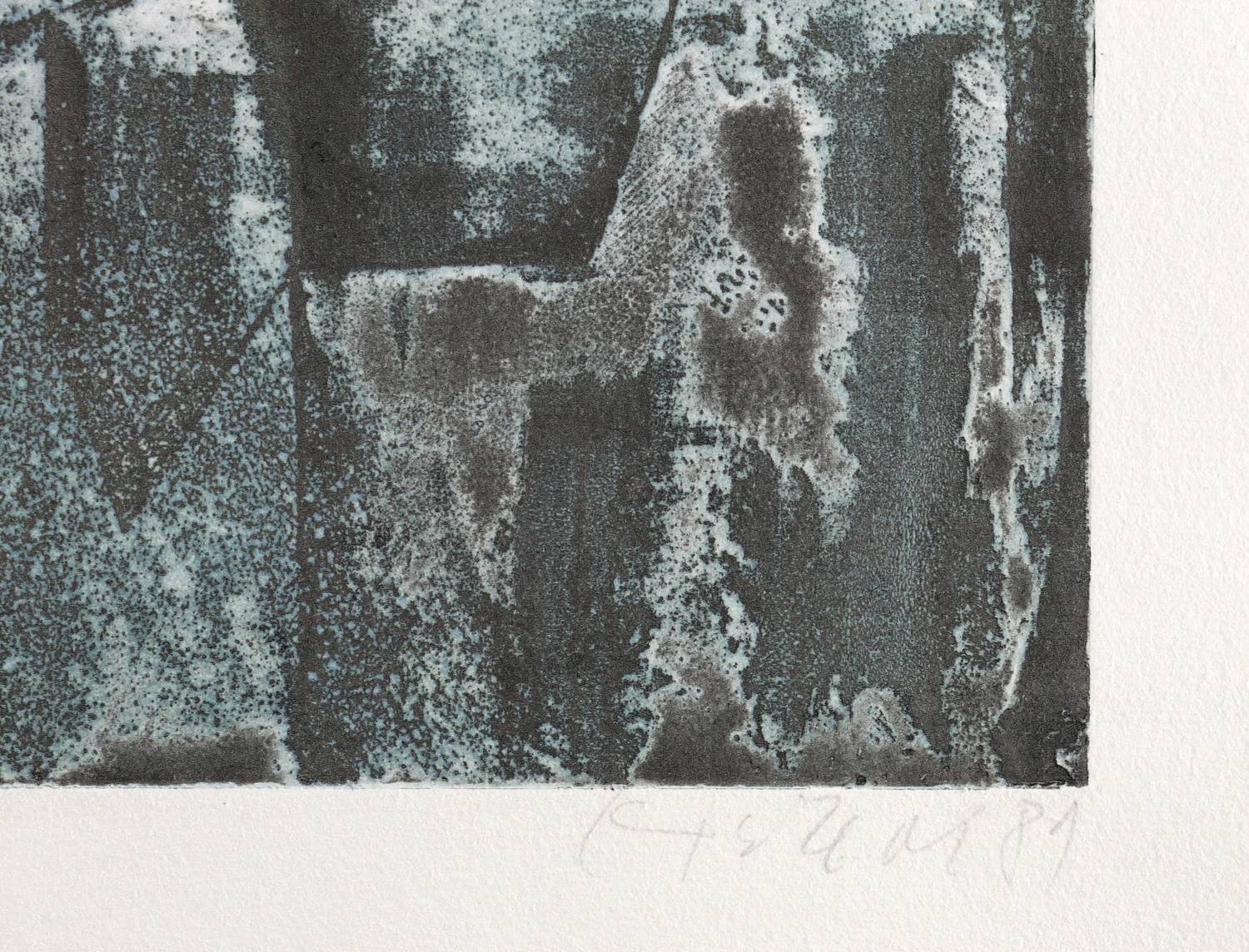 1981. Farbradierung / Farbaquatinta, in Blau & Schwarz, auf schwerem Hahnemühle-Bütten. – Originale Künstlergrafik, von Günter Horlbeck. – 64,4 x 49,4 cm (Darstellung / Platte), 79 x 57 cm (Blatt).