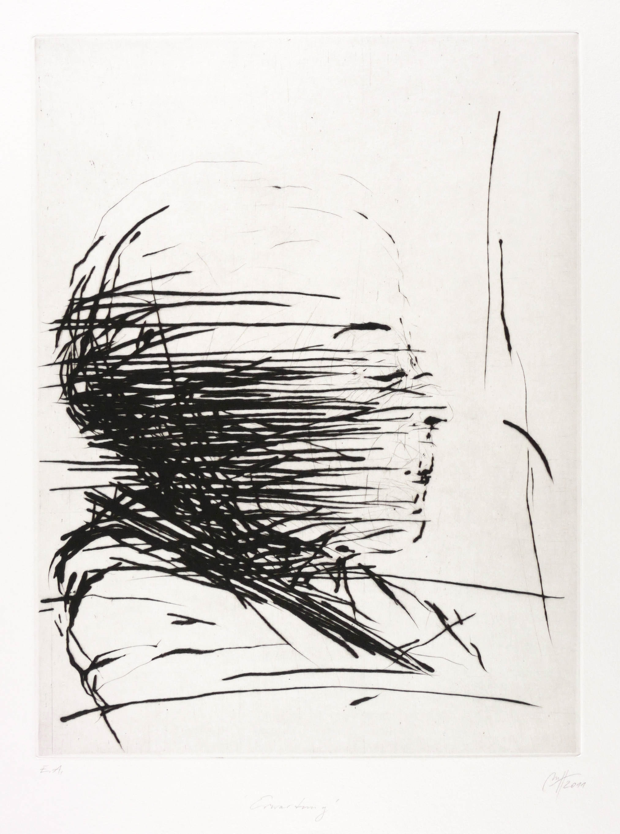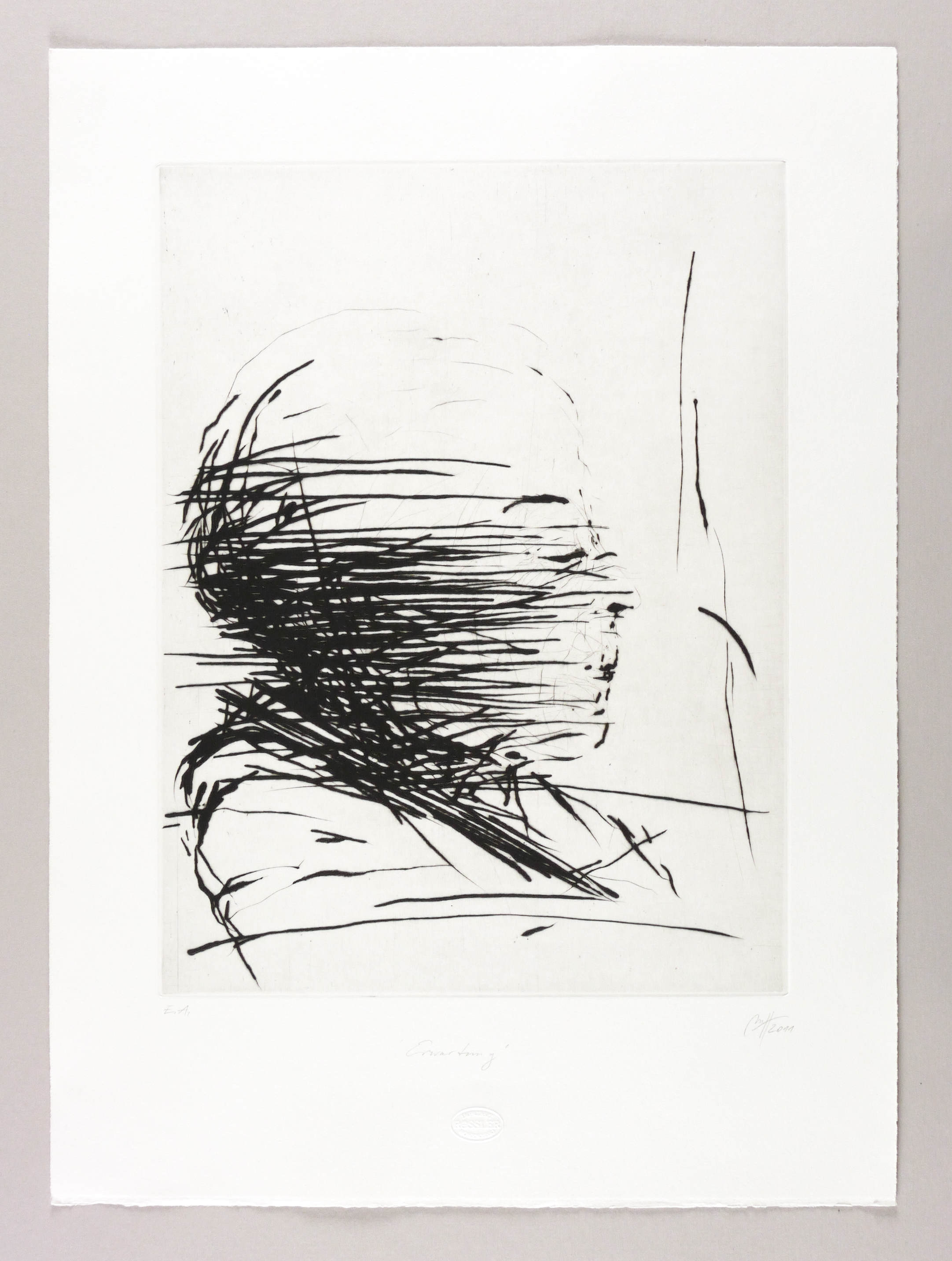 2011. Radierung / Kaltnadel, in Schwarz, auf hellem Velin. – Von Madeleine Heublein. – Künstlerexemplar (e.a.). – 39,3 x 29,7 cm (Darstellung / Platte), 55 x 40 cm (Blatt).