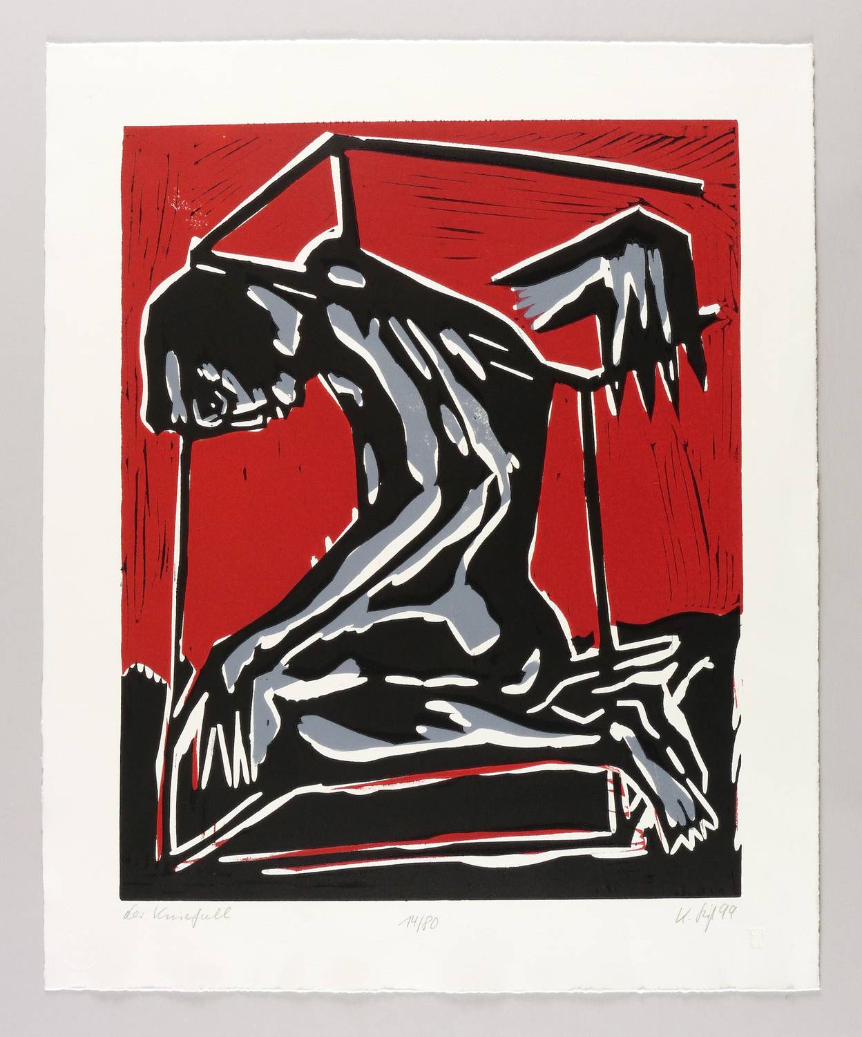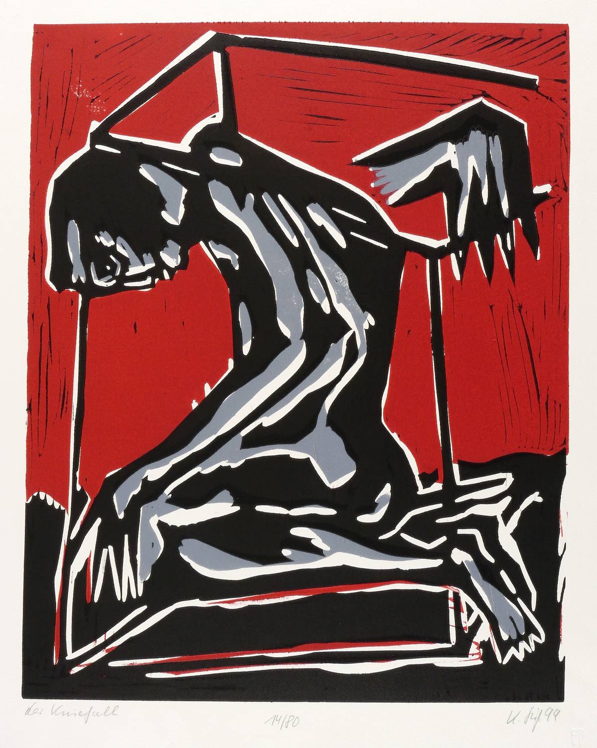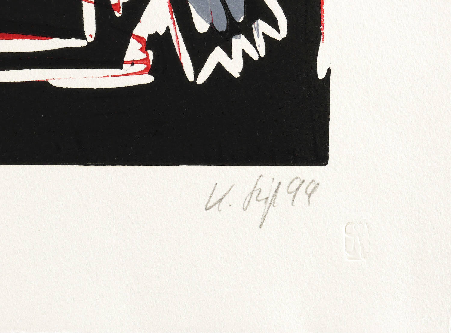 1999. Farbholzschnitt, in Rotbraun, Grau & Schwarz, auf schwerem Hanemühle. – Von Klaus Süß. – Auflage Exemplar Nr. 14/80. – 53,5 x 42,7 cm (Darstellung / Druckstock), 65 x 54 cm (Blatt).