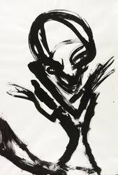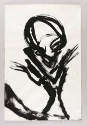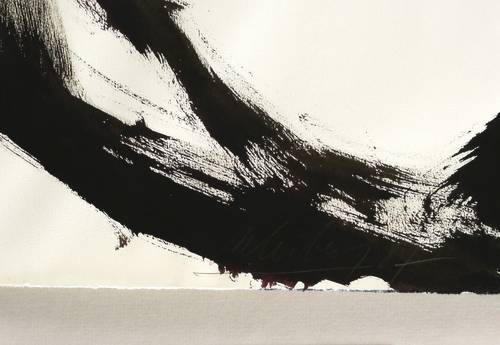 1987. Zeichnung / Pinselzeichnung- & Kreidelithografie, in schwarzer Tusche, auf leichtem hellgelbem Bütten. – Originale Künstlergrafik, von Helge Leiberg. – Unikat. – 78,6 x 52,2 cm (Darstellung / Blatt).