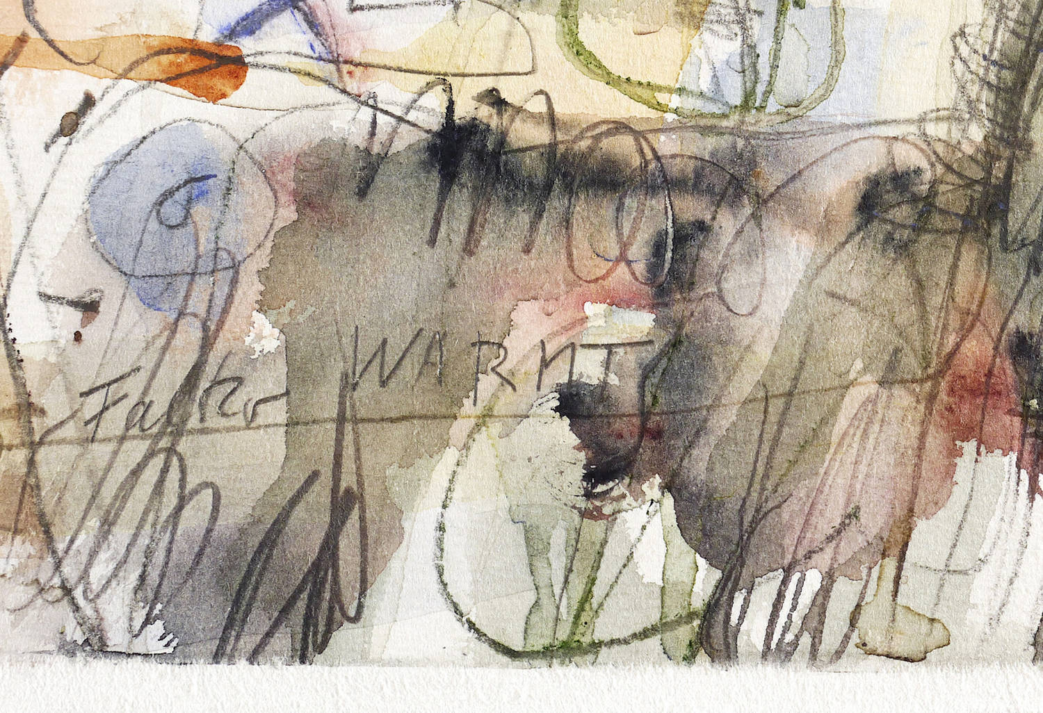 1986. Mischtechnik / Aquarell, Tusche & Bleistift, auf schwerem hellem Hahnemühle-Bütten. – Originale Künstlergrafik, von Falko Warmt. – Unikat. – 66,5 x 54,0 cm (Darstellung / Blatt).