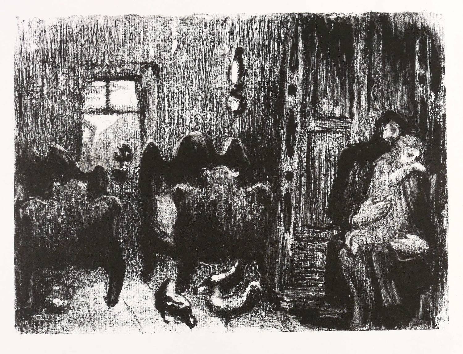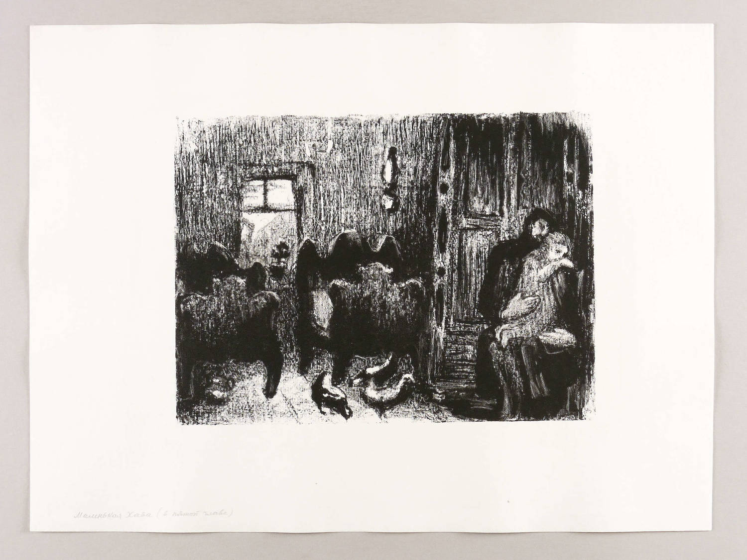 Mayer-Strodt V 95. – Unsigniert. Links unten in Bleistift vom Künstler kyrillisch bezeichnet: ″Mаленькая Xaвa (в пятои главe)″. – Abzug außerhalb der Auflage von 125 Exemplaren zum lithografischen Mappenwerk ″Tewje, der Milchmann″ zu Scholem Alejchem (Moskau: Sovetskij Chudoznik 1961/1966). Druck wohl in Leningrad. - Die etwas spätere Edition als illustriertes Buch (Dresden: Verlag der Kunst 1967) wurde als ″Schönstes Buch der DDR 1967″ ausgezeichnet. - Sehr selten. – Schönes Exemplar. Sehr guter Zustand.