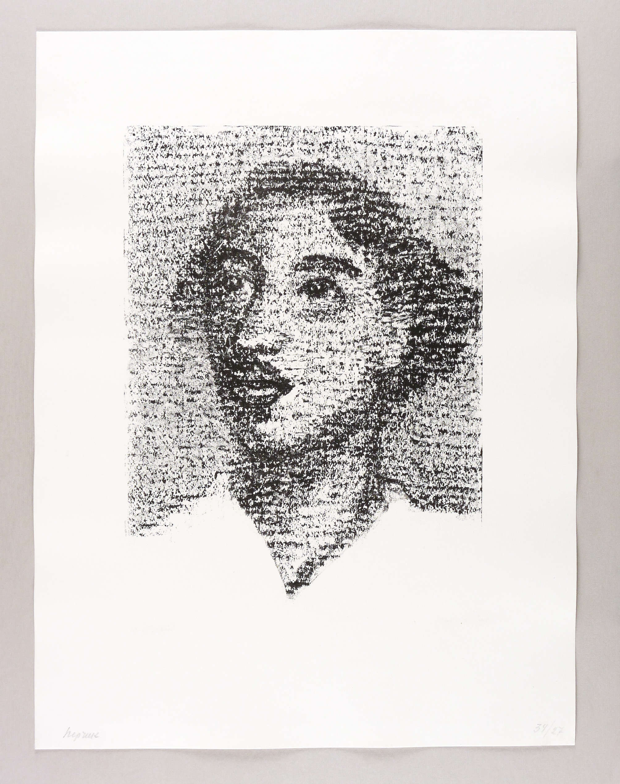 1957-1960. Lithografie / Pinsellithografie, partiell Textildruck, in Schwarz, auf weichem rauem Velin. – Originale Künstlergrafik, von Anatoli Kaplan. – 41,0 x 30,8 cm (Darstellung / Druckbild), 62 x 47 cm (Blatt).