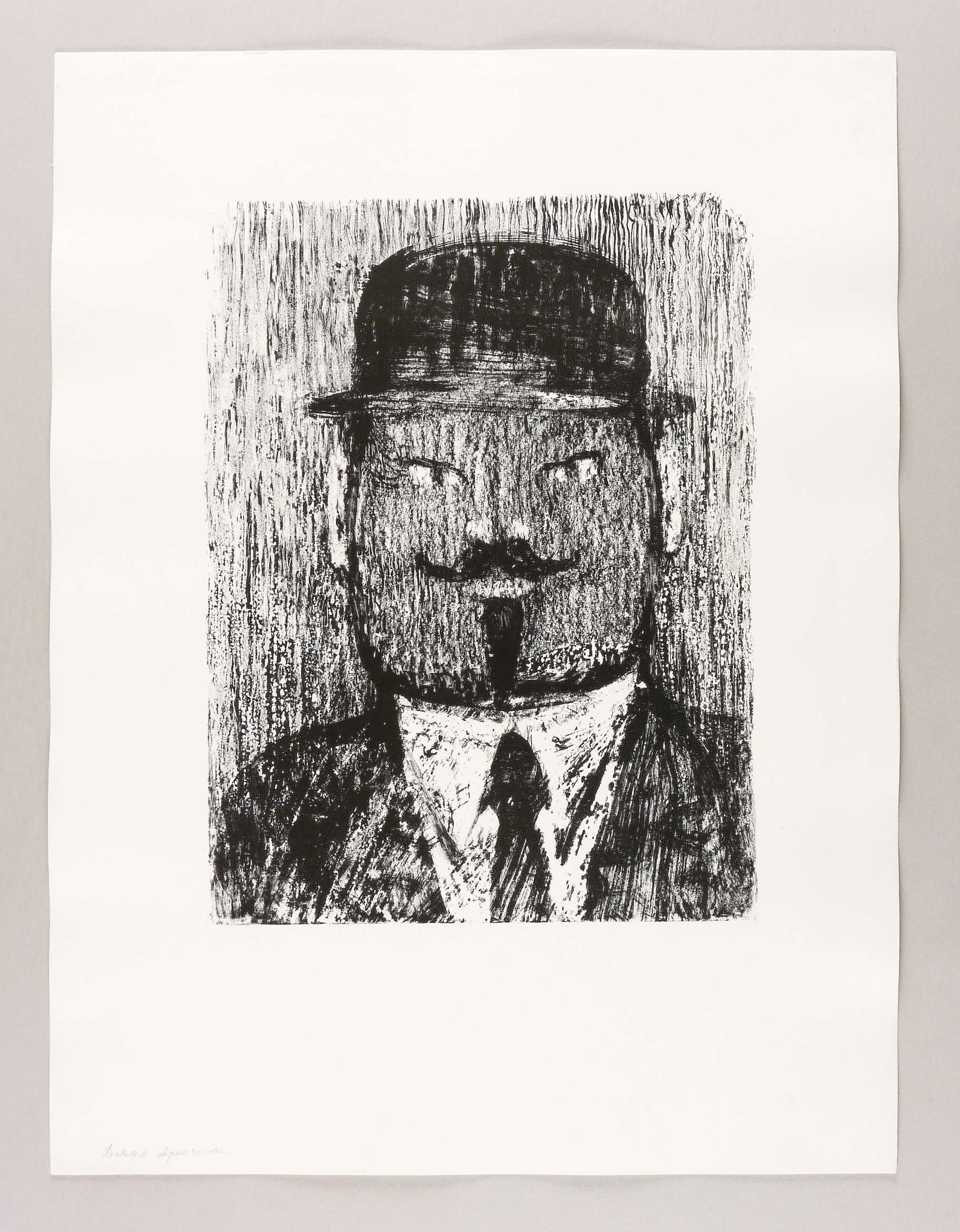 1957-1960. Lithografie / Kreide- & Pinsellithografie, partiell geschabt, in Schwarz, auf weichem rauem Velin. – Originale Künstlergrafik, von Anatoli Kaplan. – 40,0 x 30,2 cm (Darstellung / Druckbild), 62 x 47 cm (Blatt).