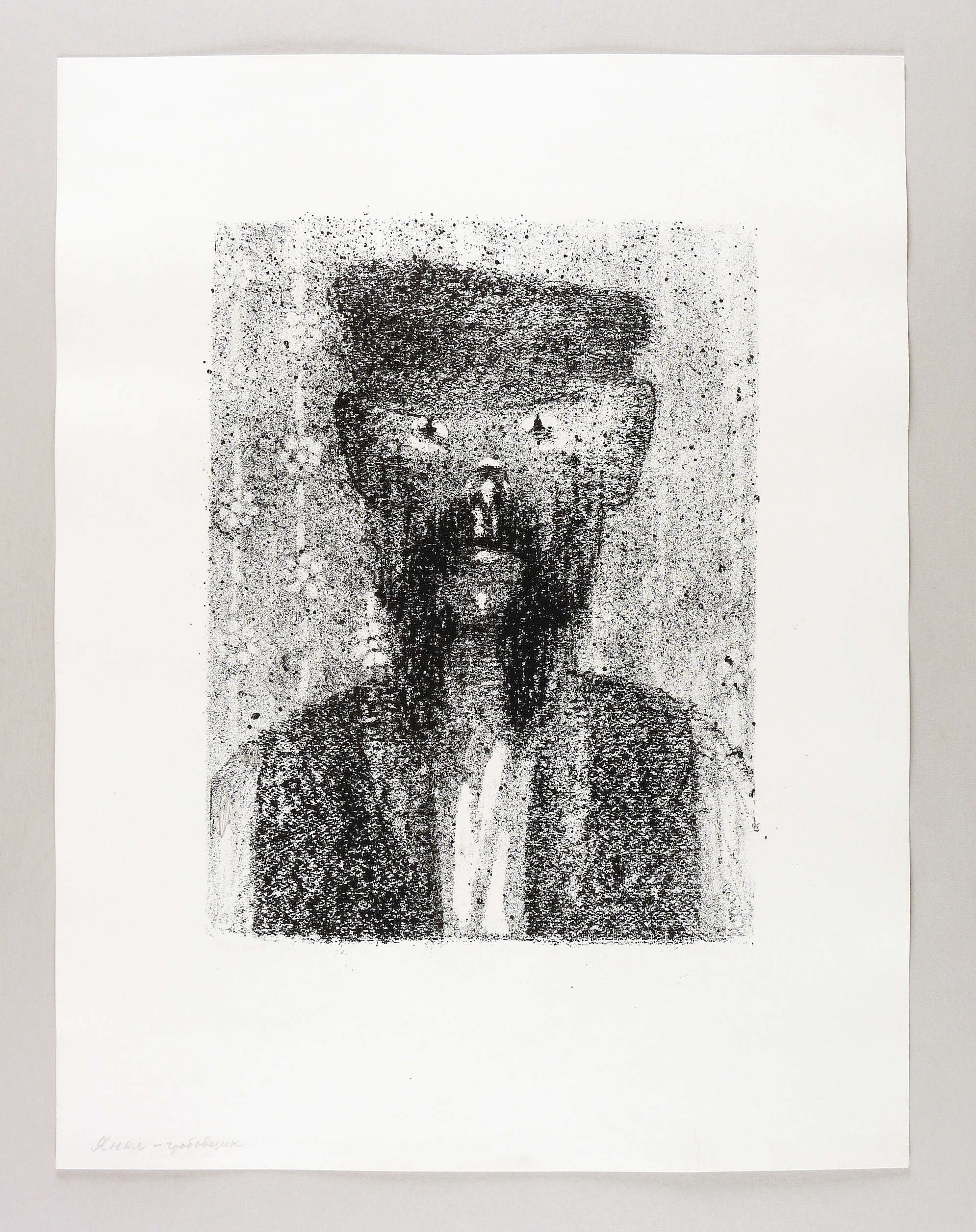 1957-1960. Lithografie / Pinsel- & Kreidelithografie, partiell gewischt, in Schwarz, auf weichem rauem Velin. – Originale Künstlergrafik, von Anatoli Kaplan. – 40,0 x 30,0 cm (Darstellung / Druckbild), 61 x 47 cm (Blatt).