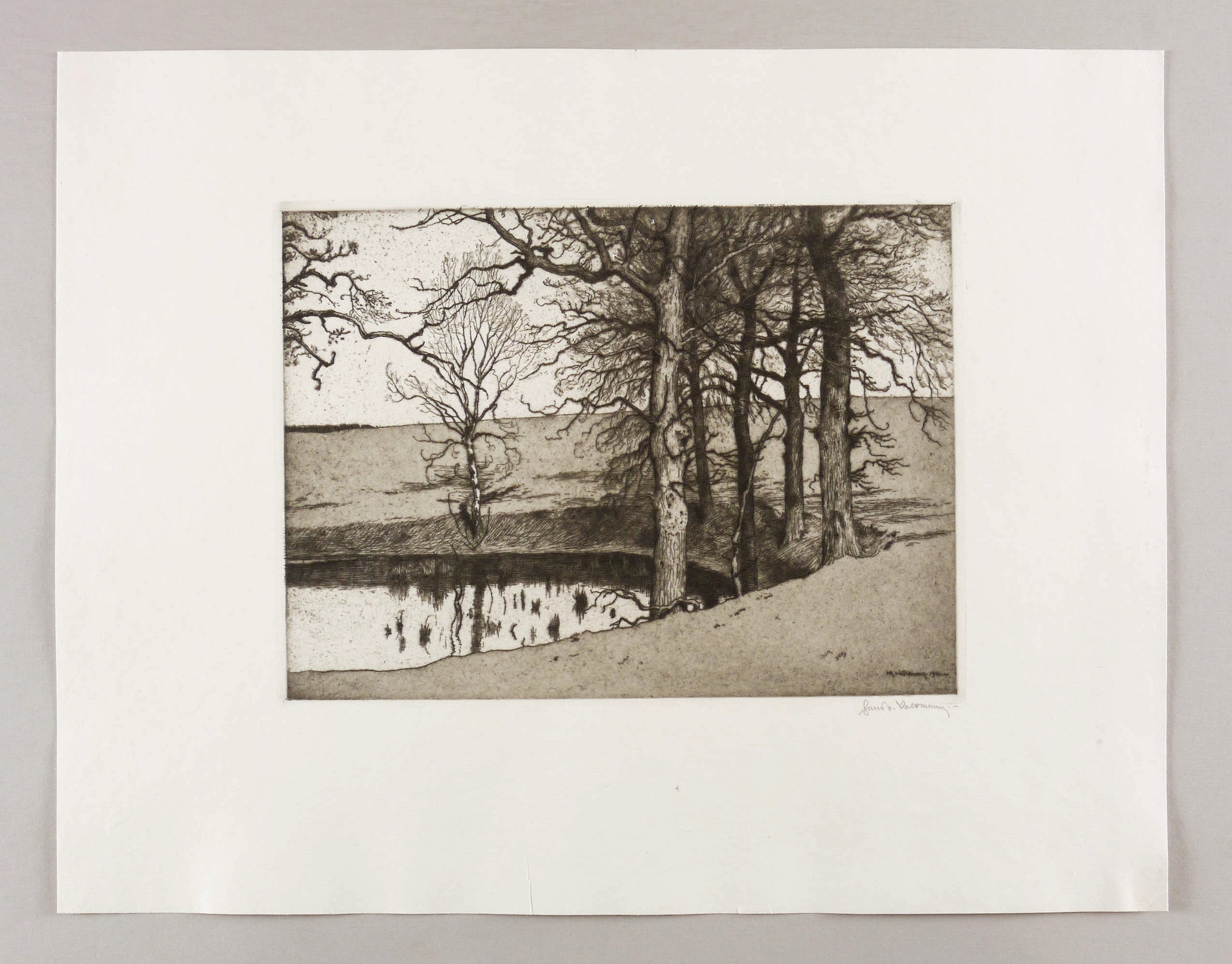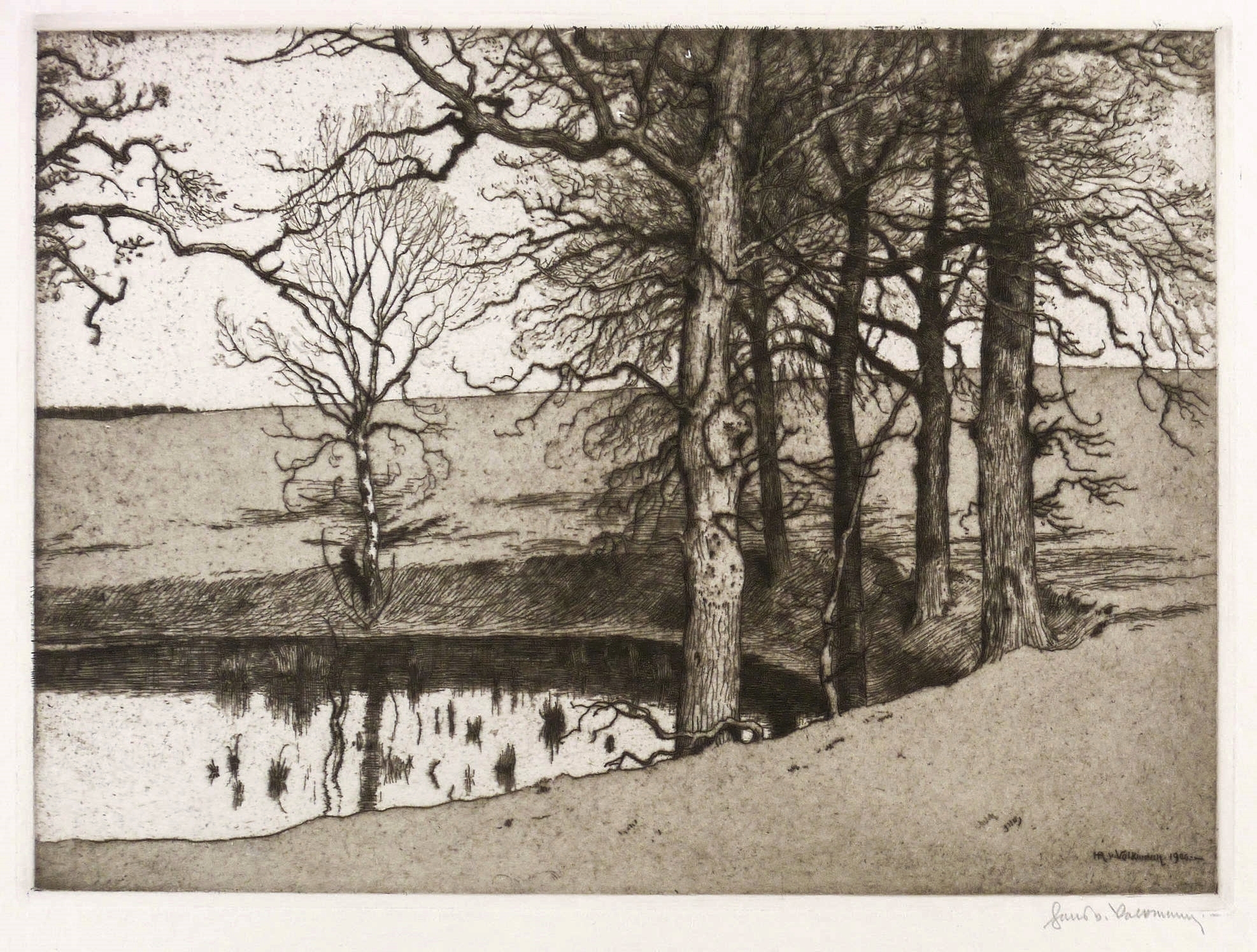 Volkmann, Hans Richard von. – „Bäume am Teichufer”.
