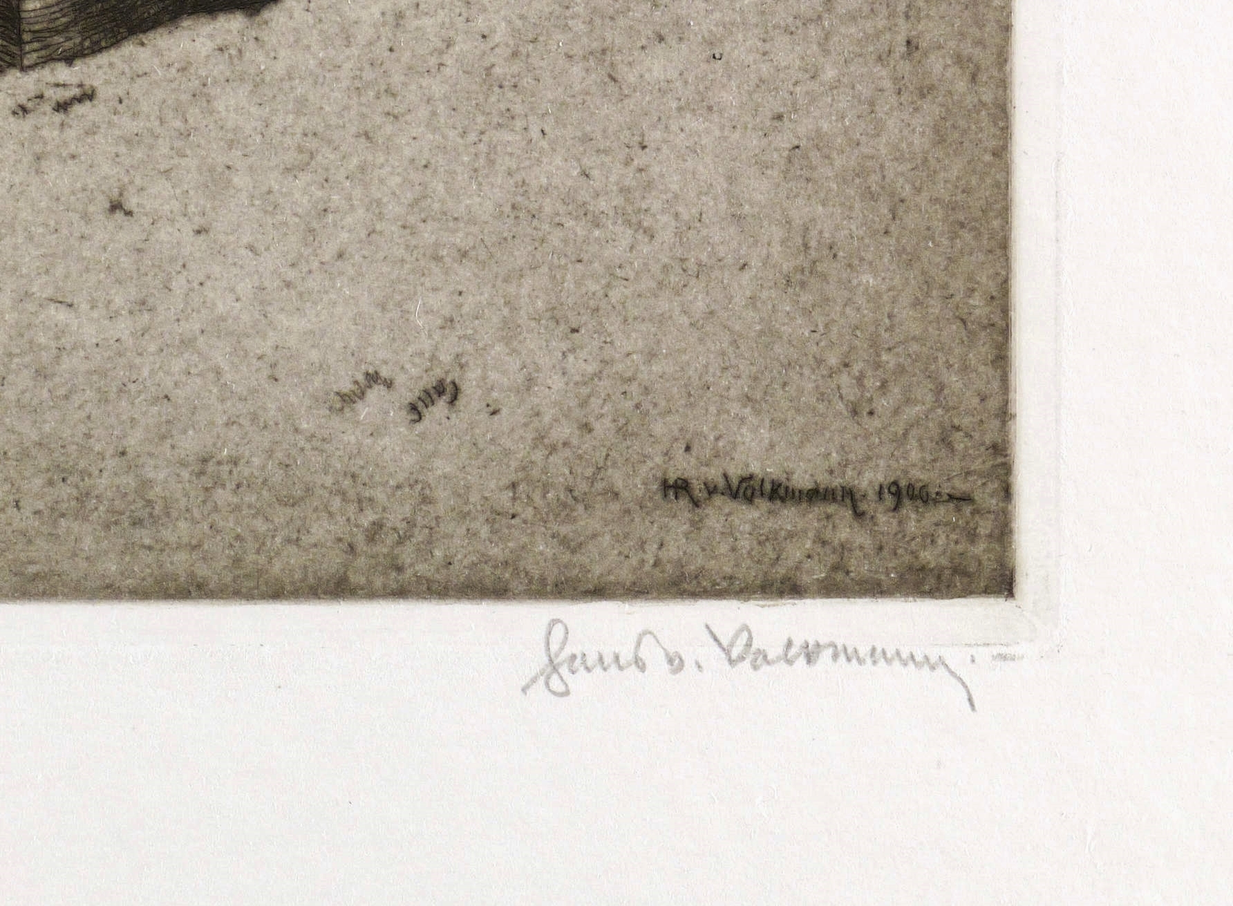 Rechts unten in Bleistift signiert. In der Platte rechts unten signiert und signiert: ″HR. v. Volkmann. 1906″. – Sehr guter Zustand.