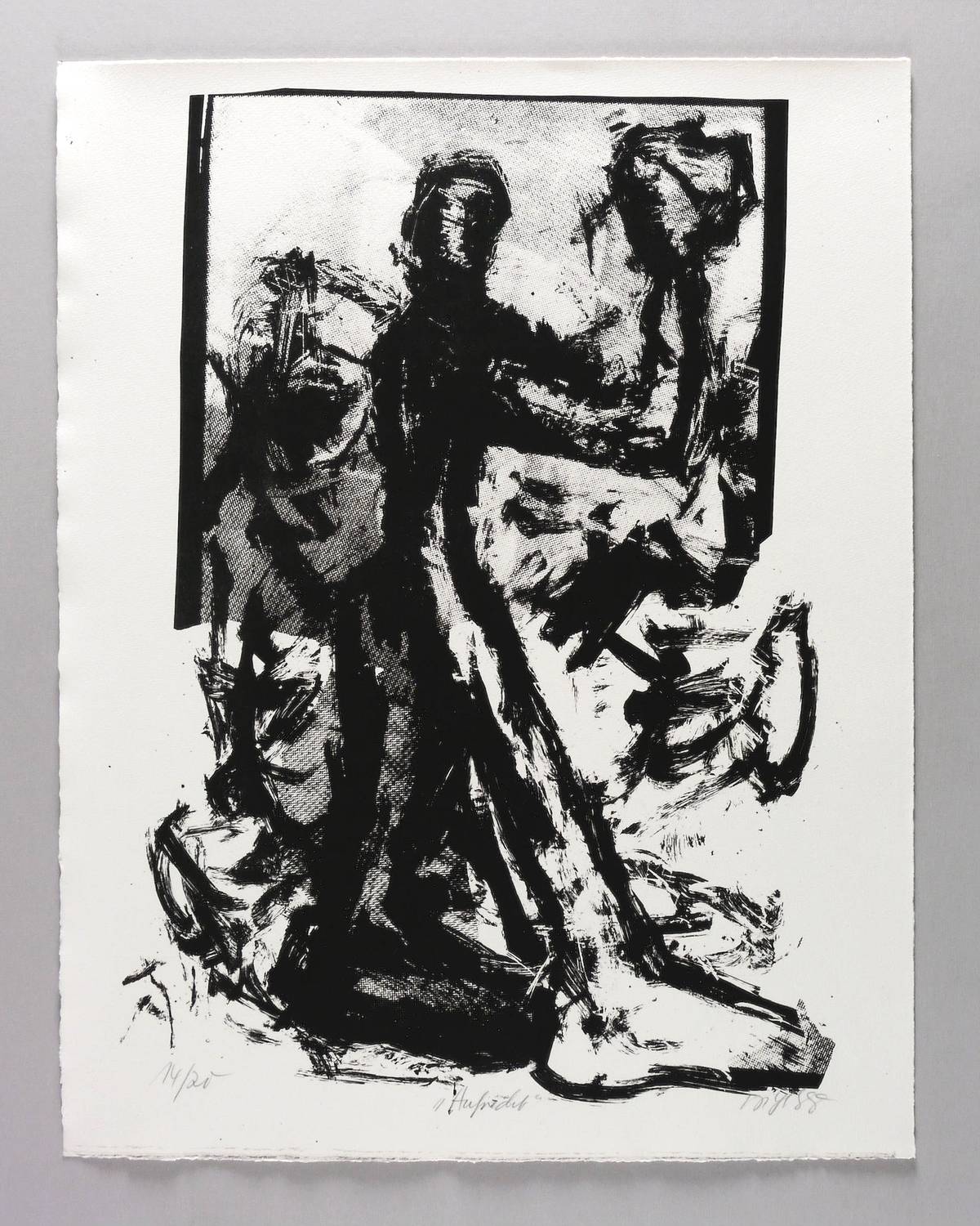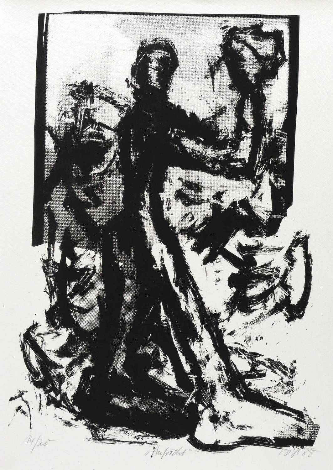 1988. Siebdruck / Serigrafie, in Schwarz, auf rauem genarbtem Hahnemühle. – Originale Künstlergrafik, von Frank Voigt. – Auflage Exemplar Nr. 14/20. – 62,5 x 44,5 cm (Darstellung / Druckbild), 69 x 53 cm (Blatt).