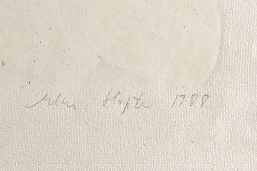 Aus: Grafikkalender 1988 (Berlin: Staatlicher Kunsthandel der DDR 1987). – Rechts unten in Bleistift signiert und datiert: ″Elke Hopfe 1988″. Links eigenhändige Auflagenbezeichnung und Titel: ″11/20 Neugeborenes″. – Provenienz: Sammlung Dr. Ingrid und Prof. Dr. Albrecht Scholz, Dresden. – Tadellos. Sehr gut erhalten.