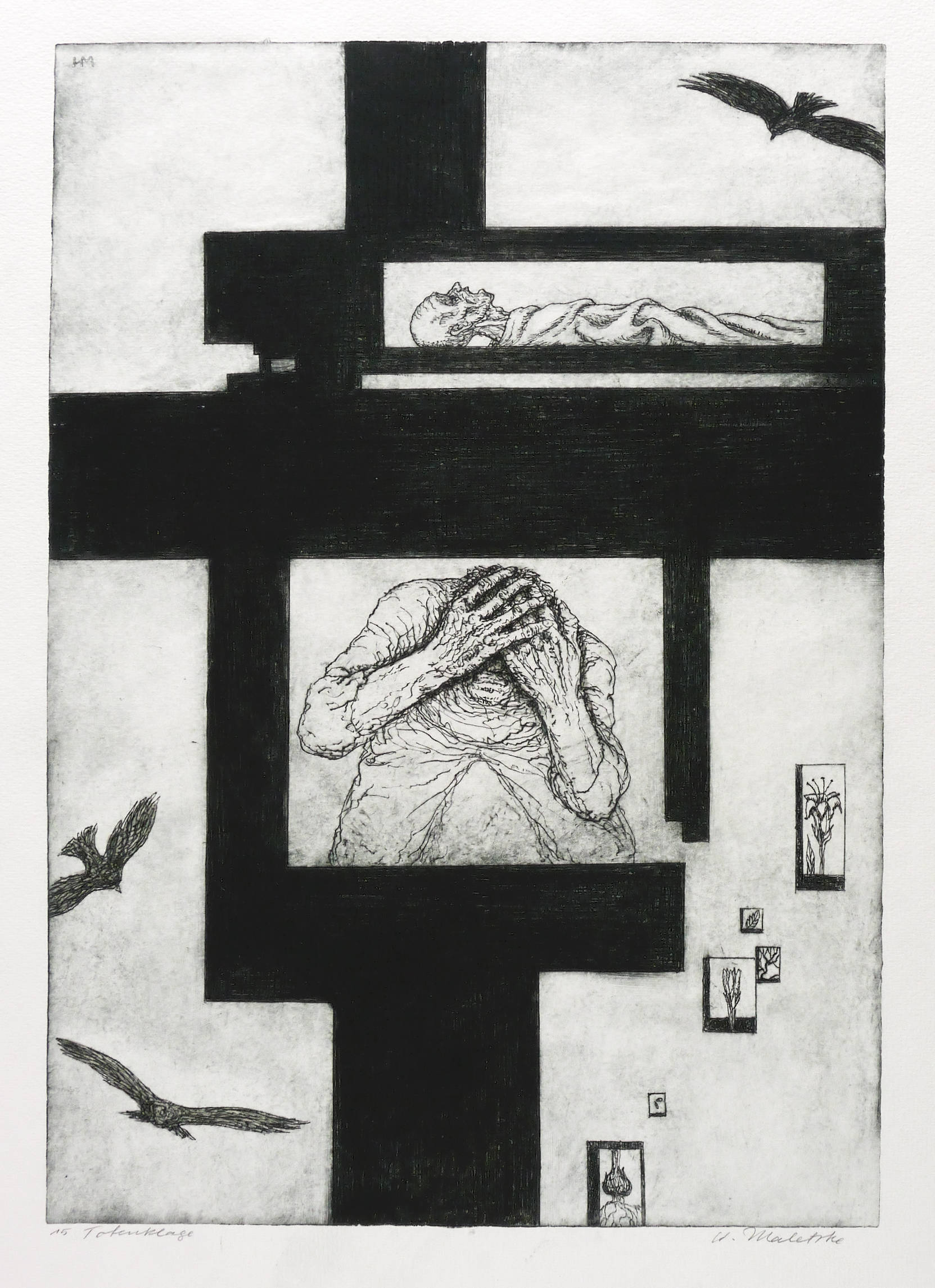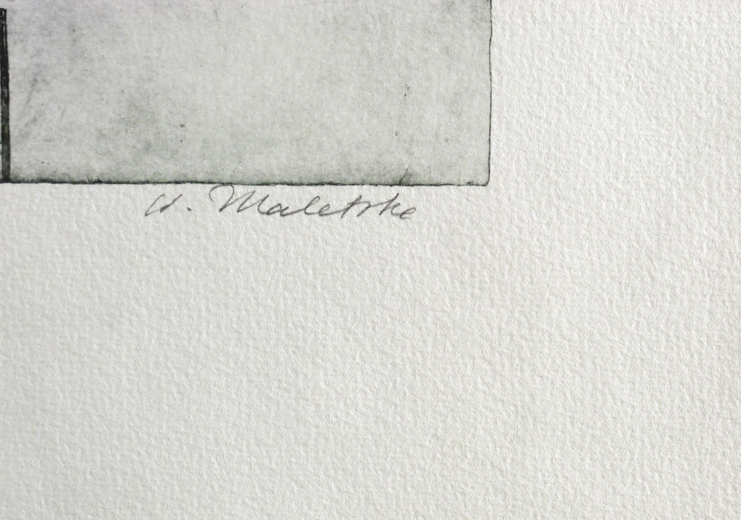 1988. Radierung / Strichätzung, in Schwarz, auf hellchamois Weißenborn. – Originale Künstlergrafik, von Helmut Maletzke. – Auflage Exemplar Nr. 15/20. – 51,6 x 36,3 cm (Darstellung / Platte), 68 x 51 cm (Blatt).