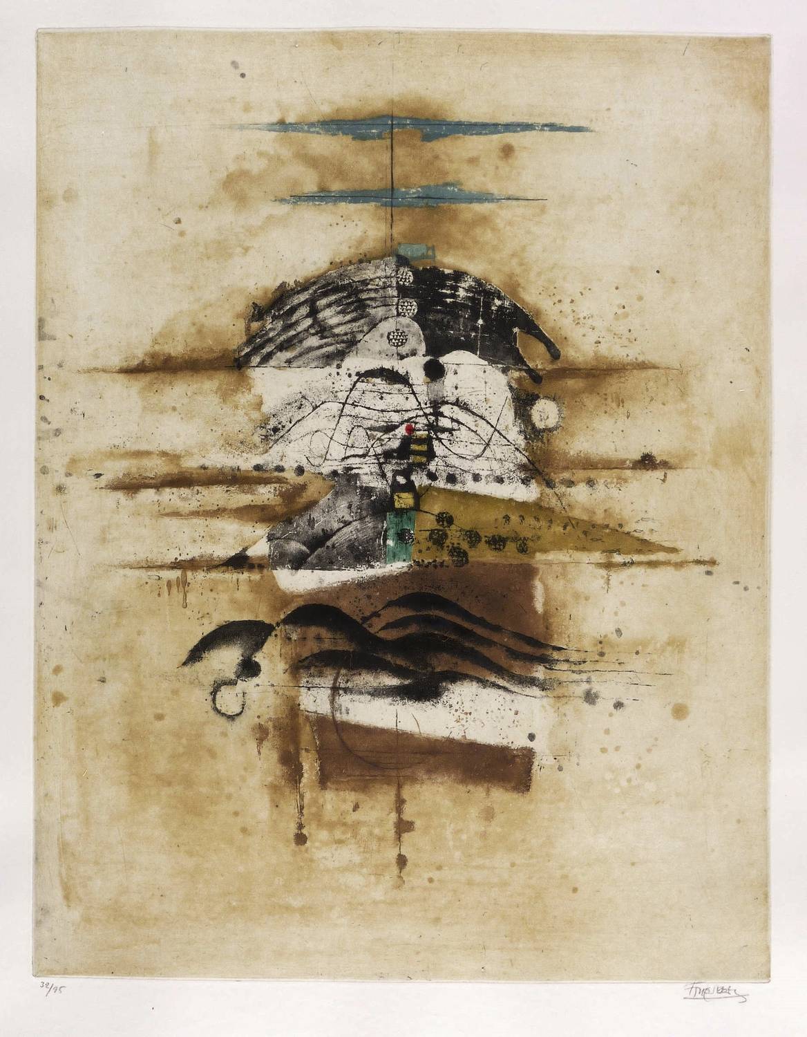 1964. Farbradierung / Aquatinta, in 8 Farben, auf schwerem weißem Lana. – Originale Künstlergrafik, von Johnny Friedländer. – Auflage Exemplar Nr. 32/95. – 59,9 x 46,8 cm (Darstellung / Platte), 76 x 57 cm (Blatt).