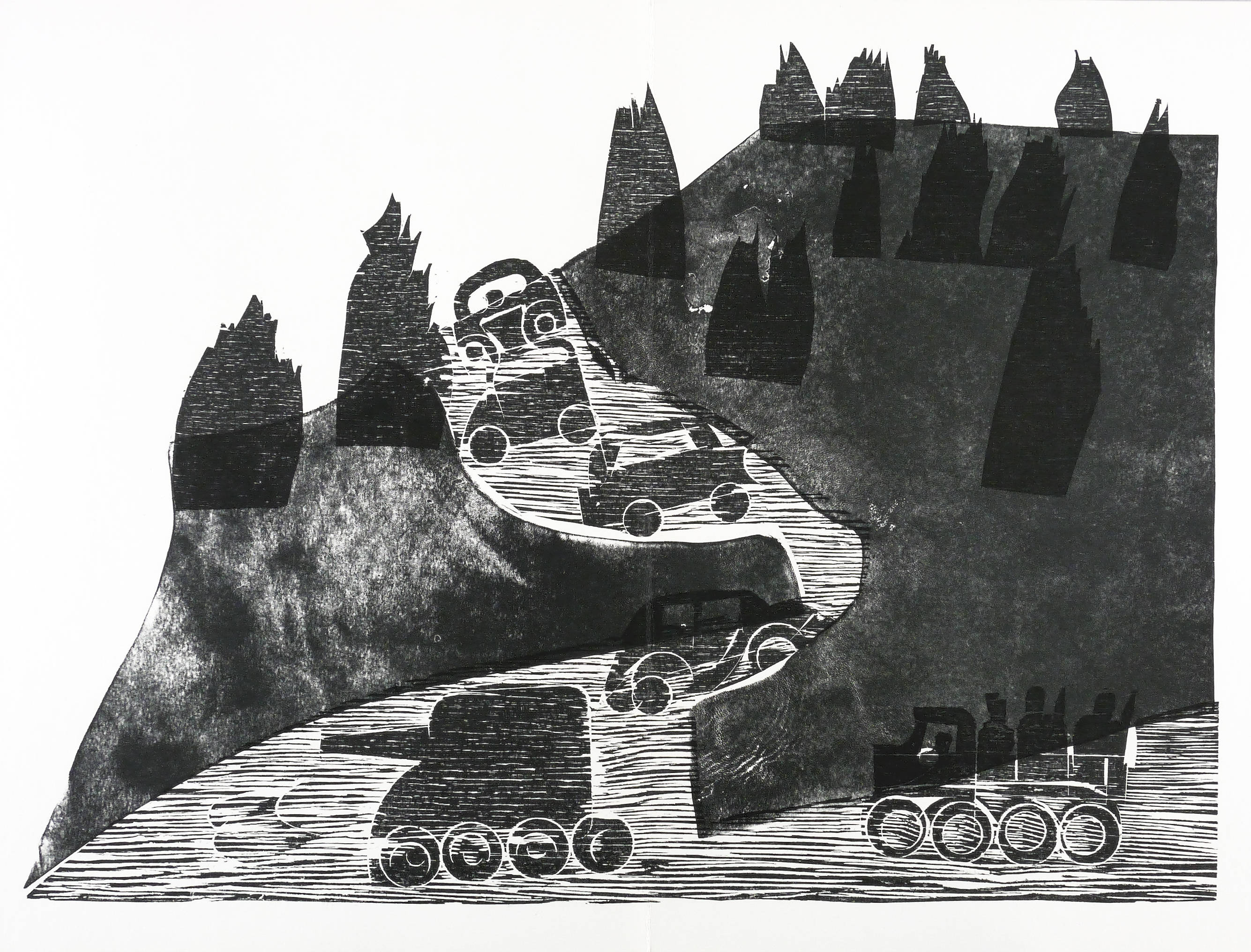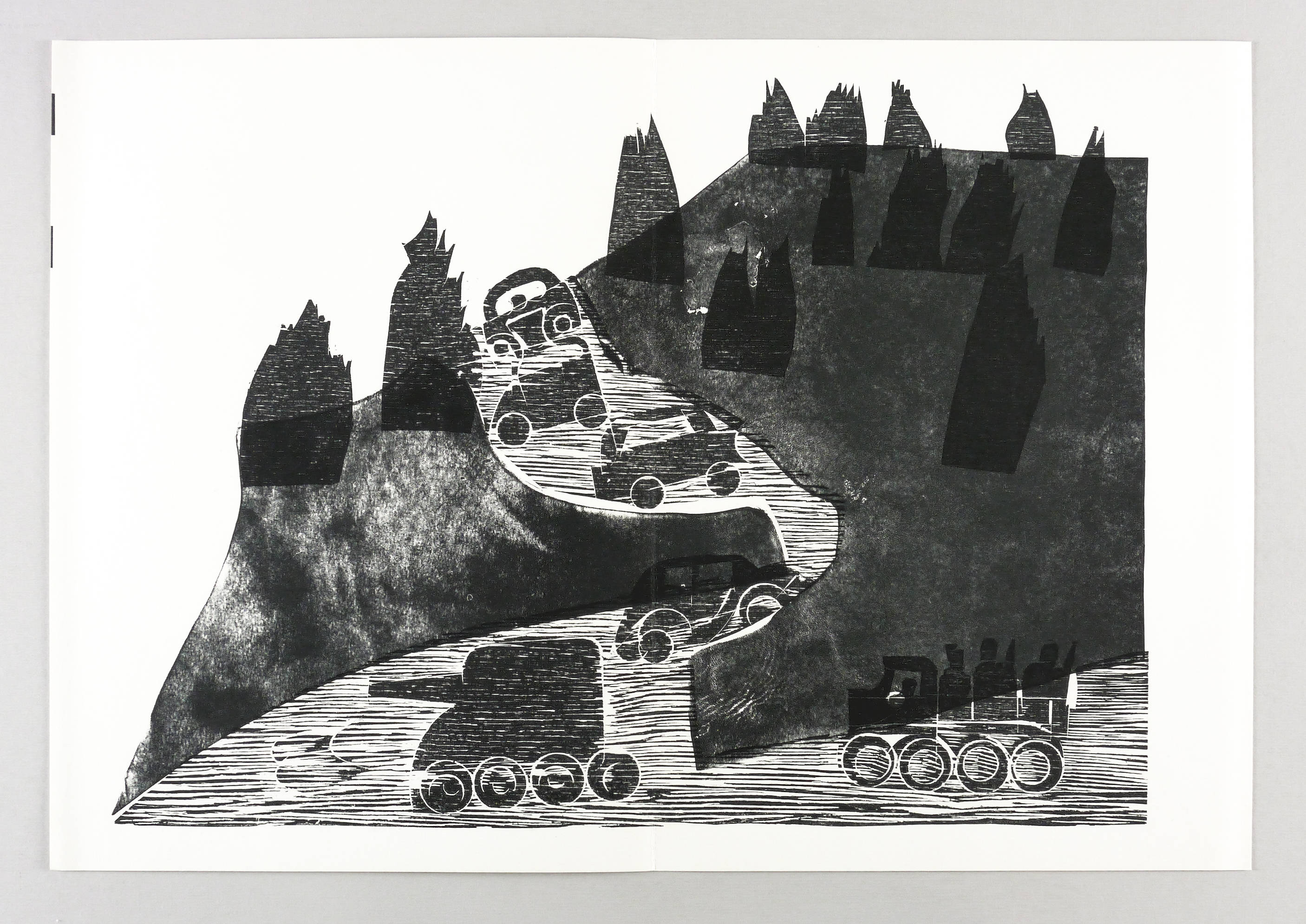 1973. Farbholzschnitt, in Anthrazit & Schwarz, auf hellchamois Velinkarton. – Originale Künstlergrafik, von HAP Grieshaber. – 40,1 x 55,6 cm (Darstellung / Druckstock), 45 x 65 cm (Blatt).