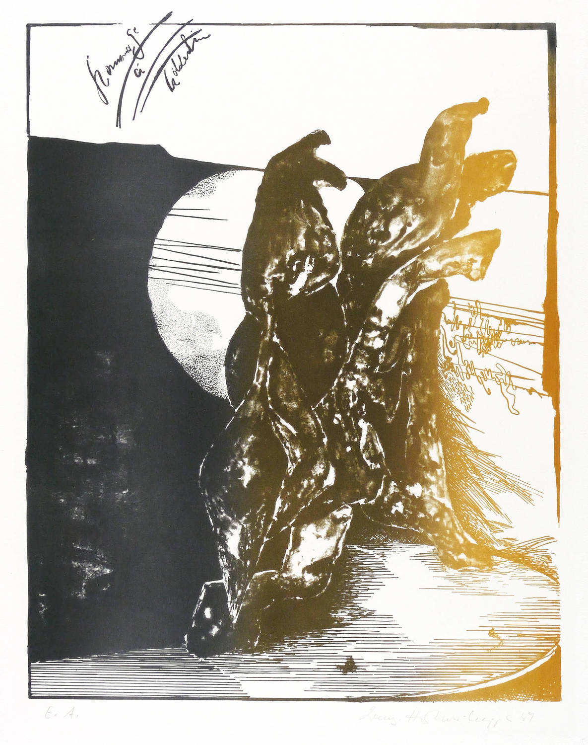 1981. Farblithografie / Feder- & Pinsellithografie, in Sepia, Braun & Schwarzviolett, auf schwerem hellchamois Hahnemühle. – Originale Künstlergrafik, von Irmgard Horlbeck-Kappler. – Künstlerexemplar (e.a.). – 48,2 x 37,6 cm (Darstellung / Druckbild), 69 x 53 cm (Blatt).