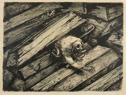 1951/1952. Zeichnung / Feder- & Pinselzeichnung, in schwarzer Tusche, auf festem gelblichem Bütten. – Originale Künstlergrafik, von Andreas Paul Weber. – Unikat. – 41,5 x 55,5 cm (Darstellung), 47 x 61 cm (Blatt).