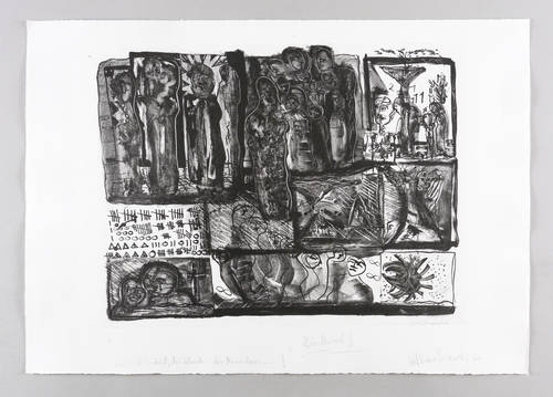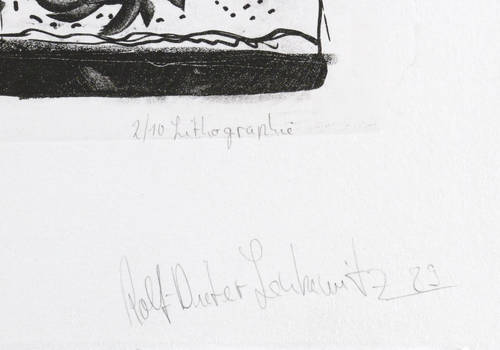 1989. Lithografie / Kreidelithografie, partiell geschabt, in Schwarz, auf schwerem hellchamois Hahnemühle. – Originale Künstlergrafik, von Rolf-Dieter Lenkewitz. – Auflage Exemplar Nr. 2/10. – 41,0 x 54,0 cm (Darstellung / Druckbild), 54 x 76 cm (Blatt).
