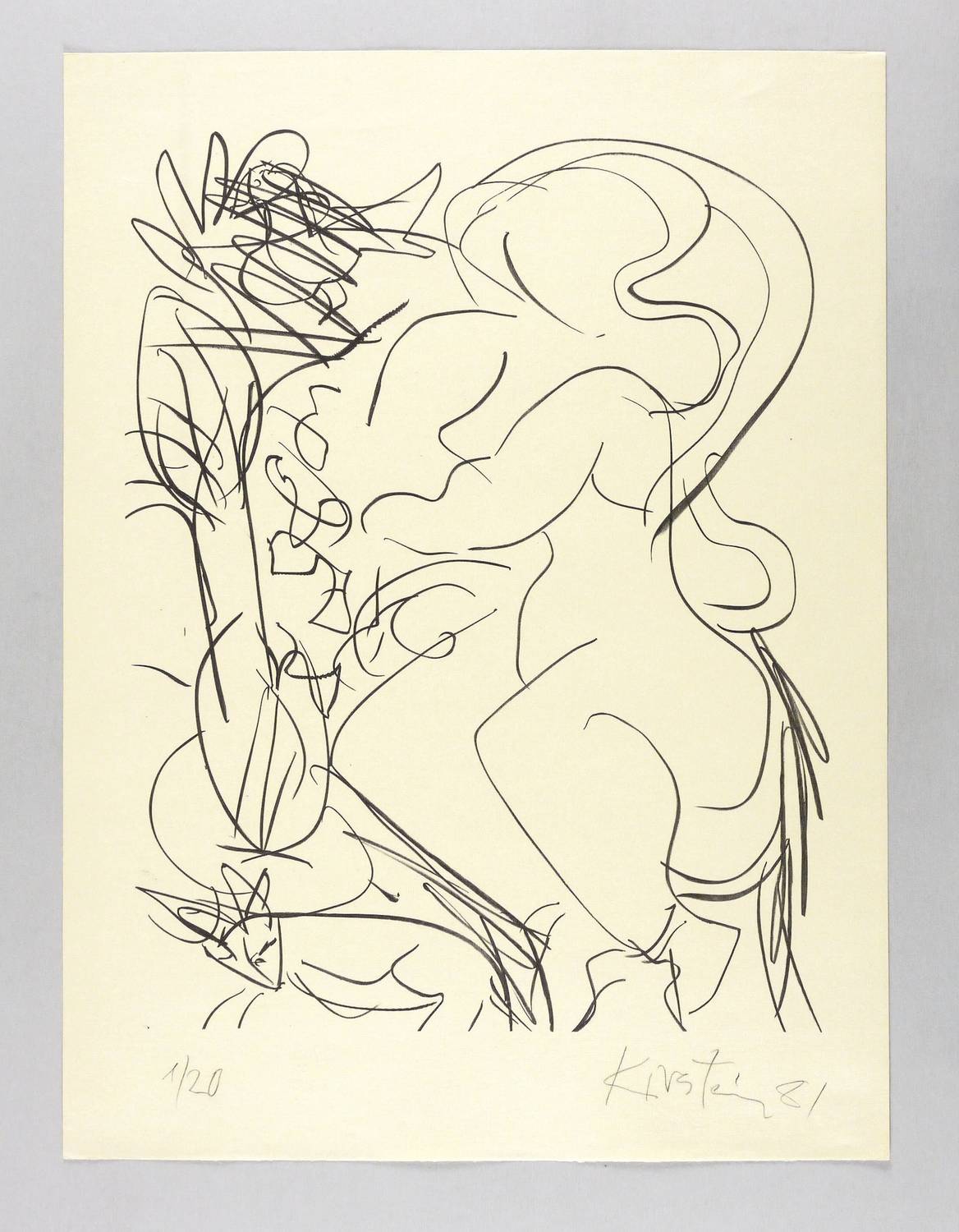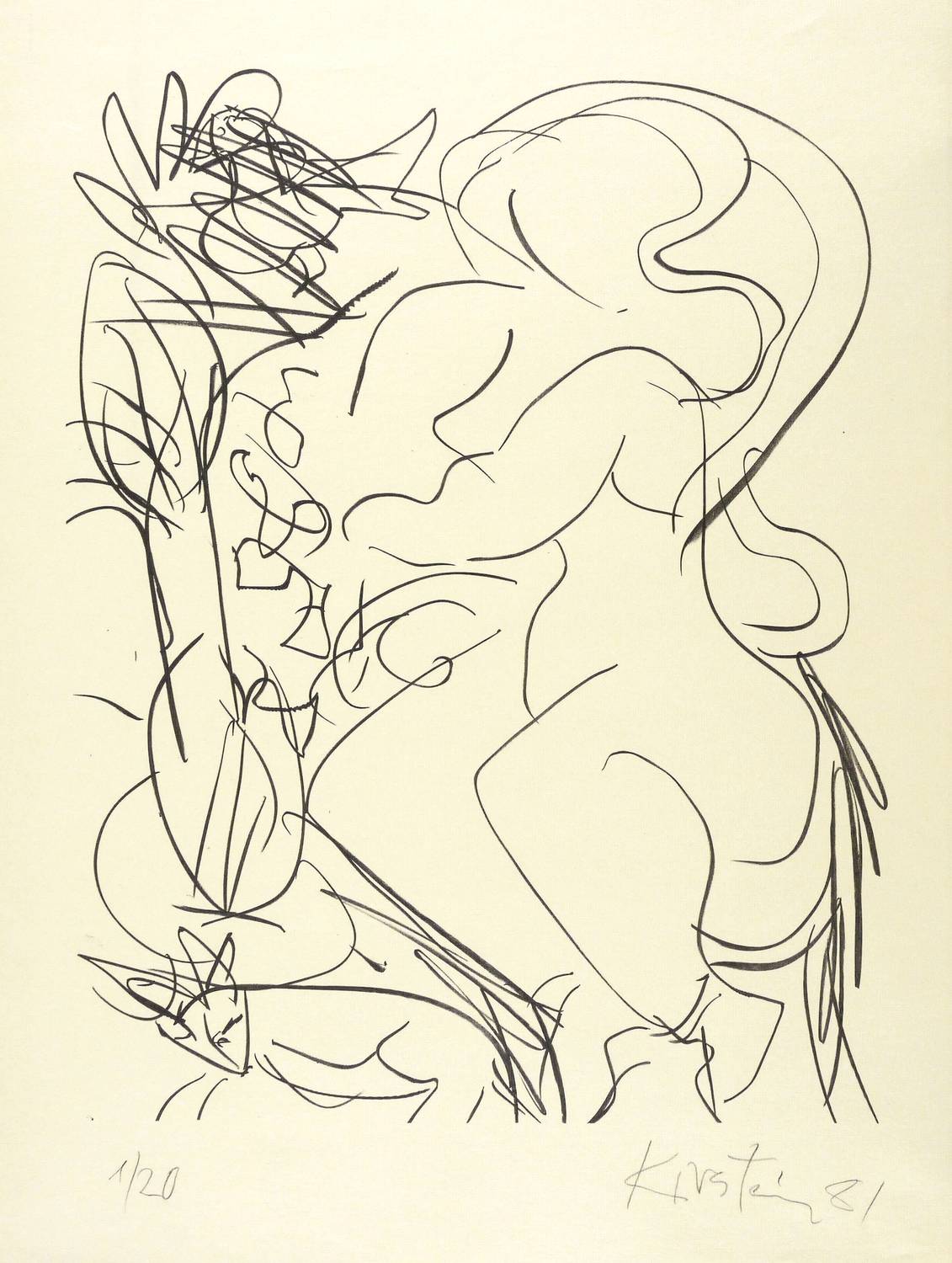 Rechts unten in Bleistift signiert und datiert: ″Kirstein 81″. Links eigenhändige Auflagenbezeichnung: ″1/20″. Wasserzeichen Ingres. – Sehr schönes edles Blatt. – Tadellos. Sehr guter Zustand.