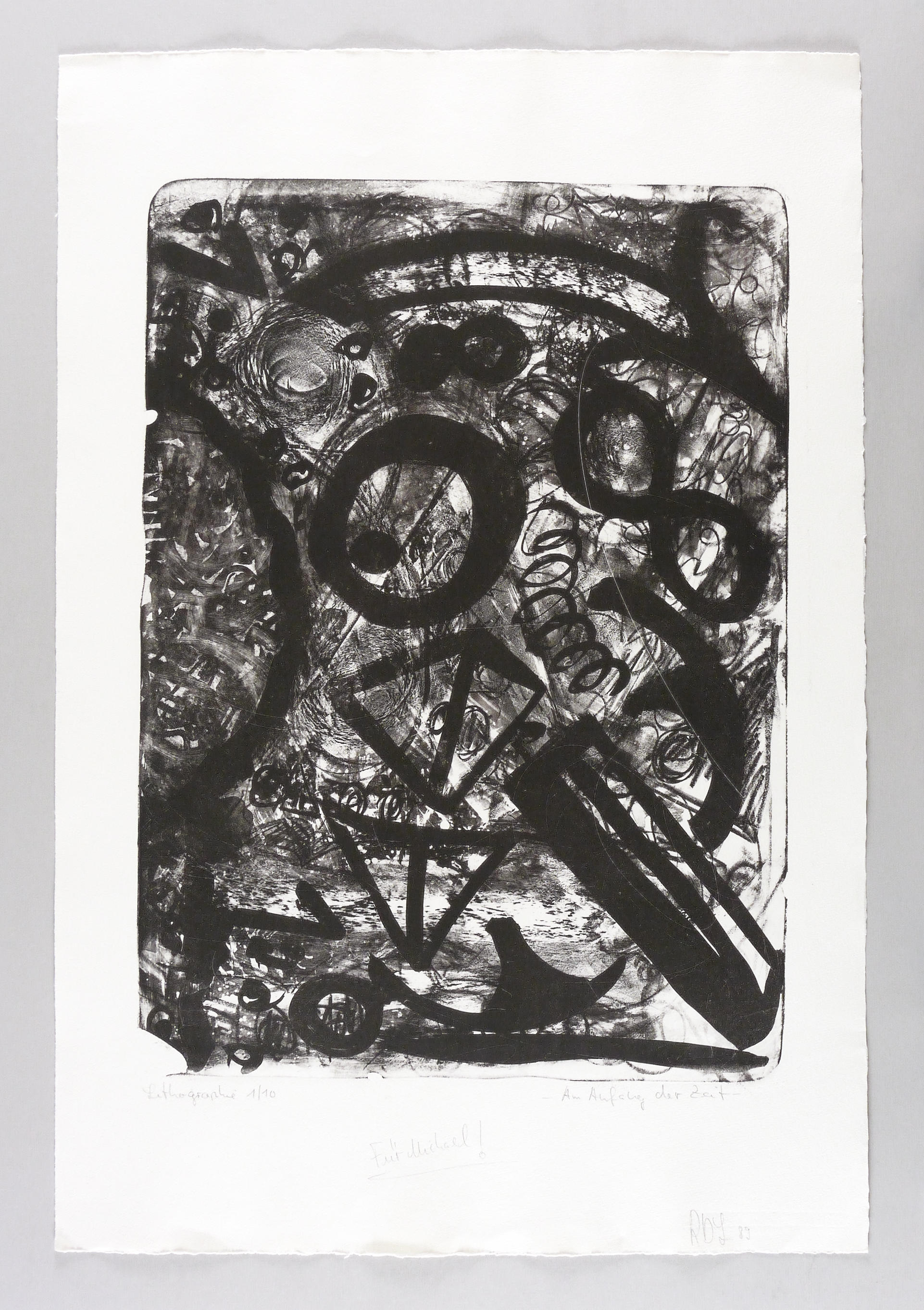 Rechts unten in Bleistift signiert und datiert. Links Auflagenbezeichnung und Titel. Widmung an den Drucker Michael Wackwitz. Wasserzeichen der Hahnemühle. – Sehr guter Zustand.