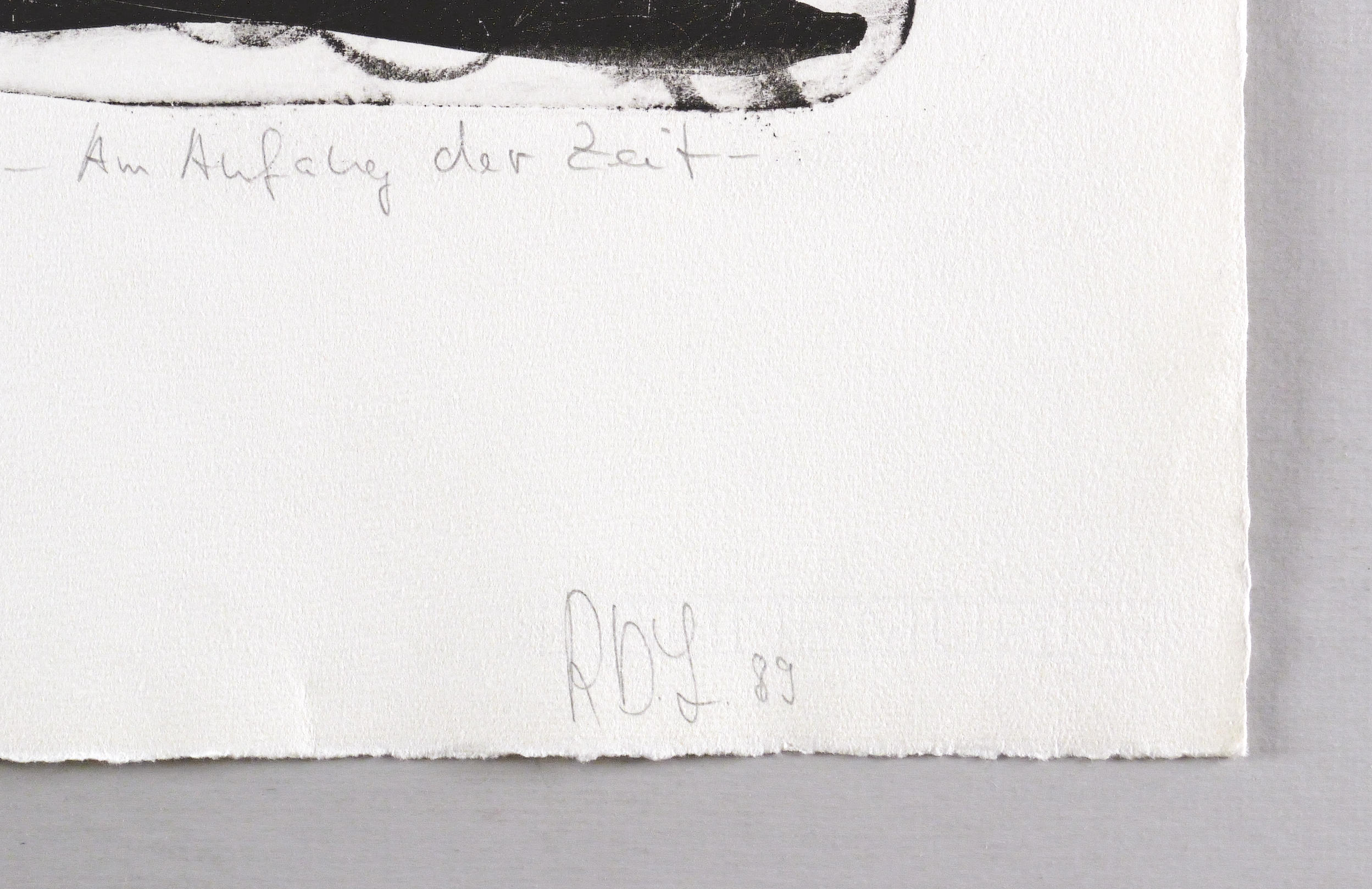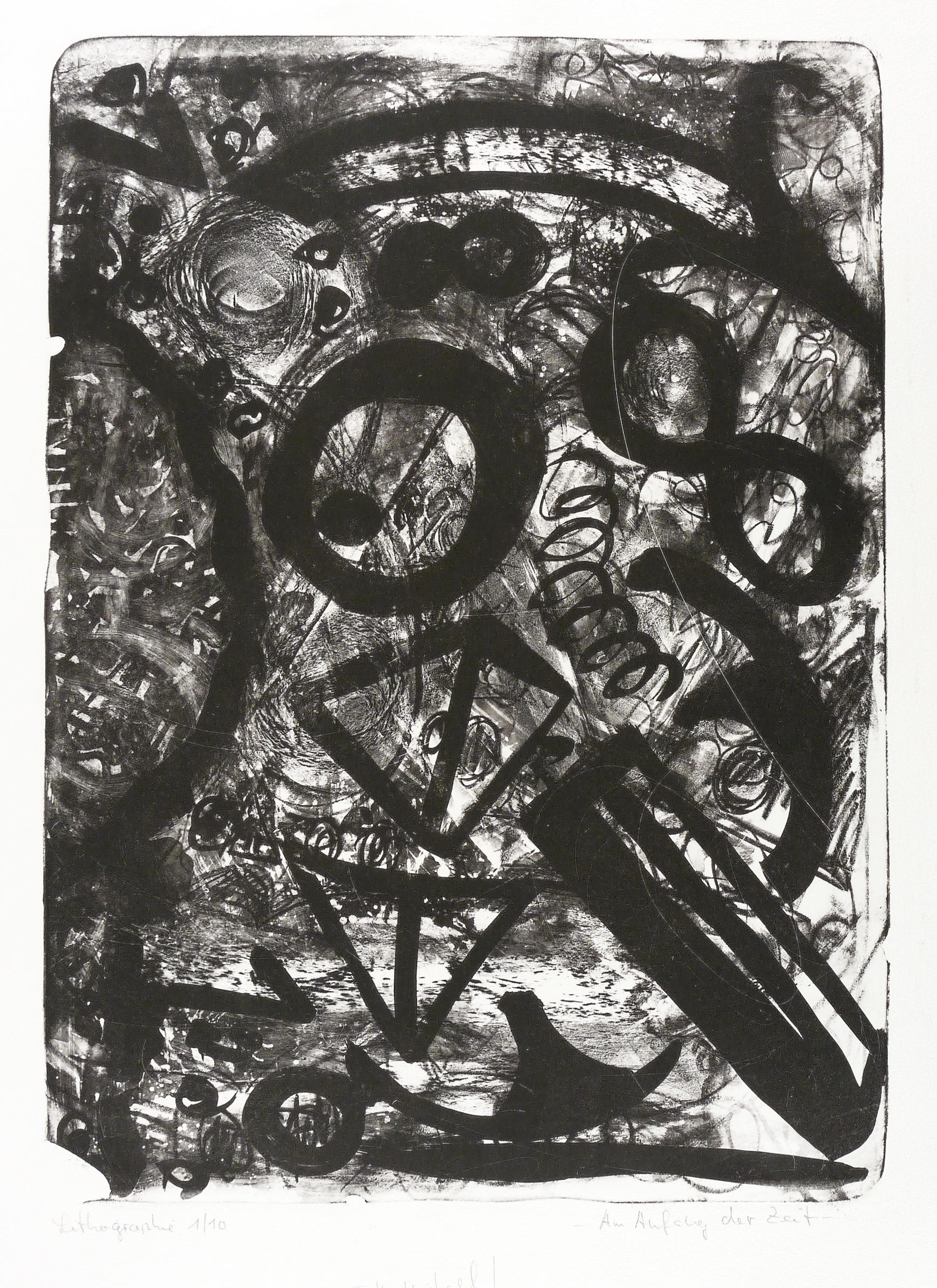 1989. Lithografie / Kreide- & Pinsellithografie, partiell geschabt, in Schwarz, auf schwerem hellchamois Hahnemühle. – Originale Künstlergrafik, von Rolf-Dieter Lenkewitz. – Auflage Exemplar Nr. 1/10. – 58,7 x 42,4 cm (Darstellung / Druckbild), 79 x 54 cm (Blatt).