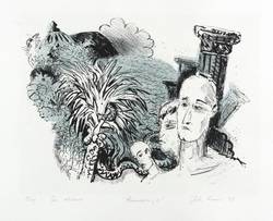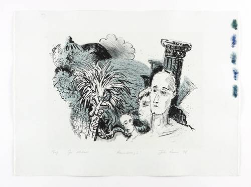 1998. Farblithografie / Kreide- & Pinsellithografie, in Grün & Schwarz, auf hellgrau getöntem Bütten. – Originale Künstlergrafik, von John Roome. – Probedruck. – 31,5 x 42,7 cm (Darstellung / Druckbild), 48 x 65 cm (Blatt).