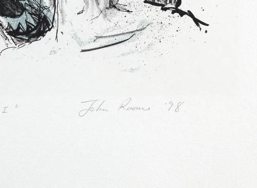 Rechts unten in Bleistift signiert und datiert: ″John Roome ’98″. Links eigenhändige Auflagenbezeichnung: ″Proof″. Mittig Titel: ″Remembering I″. Trockenstempel des Steindruckers Michael Wackwitz. – Im rechten Blattrand Farbproben aus dem Andruck. Links oben im Rand Fingerfleck aus dem Druckprozess. Sehr guter Zustand.