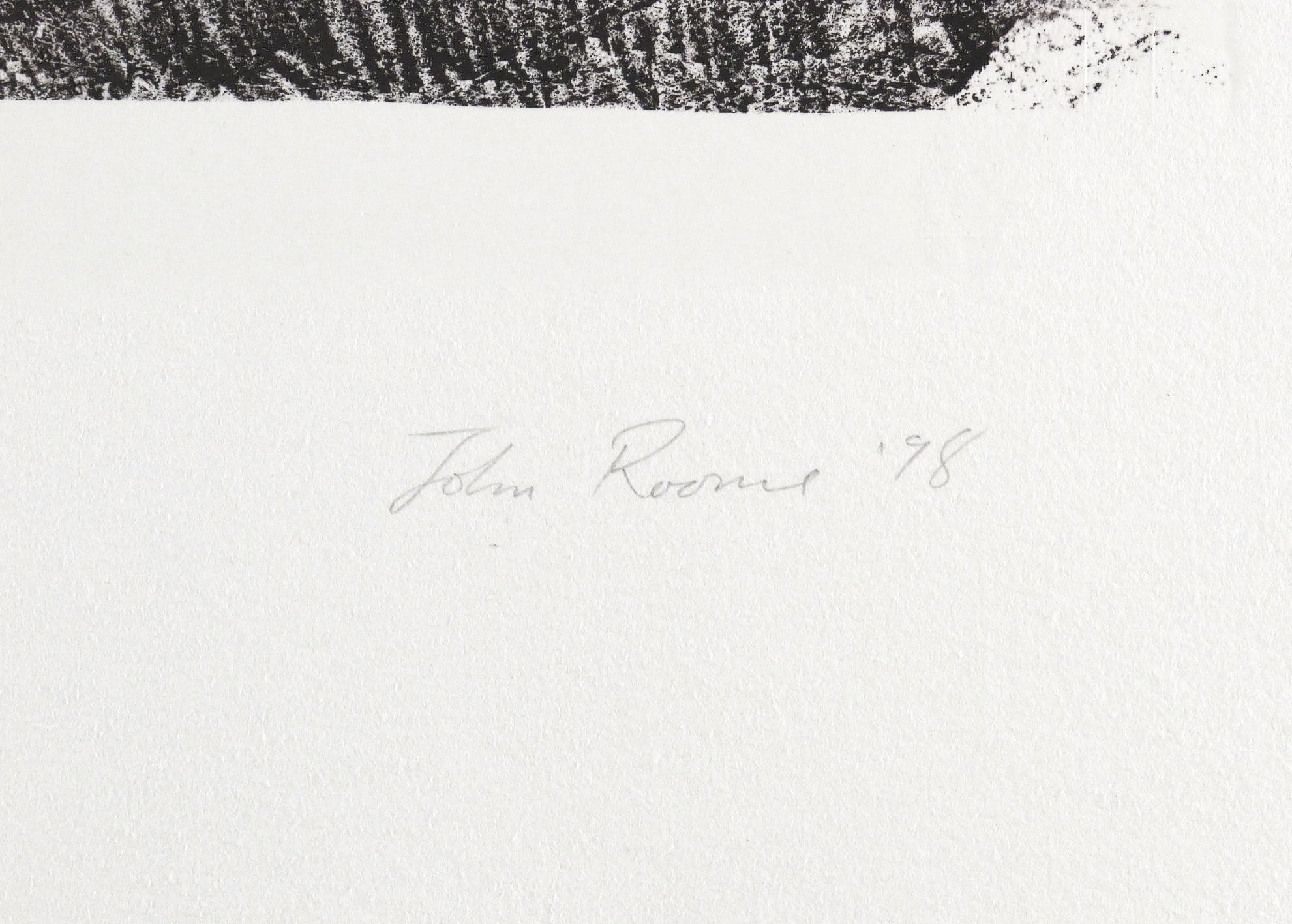 1998. Lithografie / Kreidelithografie, in Schwarz, auf schwerem chamois Hahnemühle. – Originale Künstlergrafik, von John Roome. – Auflage Exemplar Nr. 5/10. – 40,6 x 33,5 cm (Darstellung / Druckbild), 68 x 50 cm (Blatt).