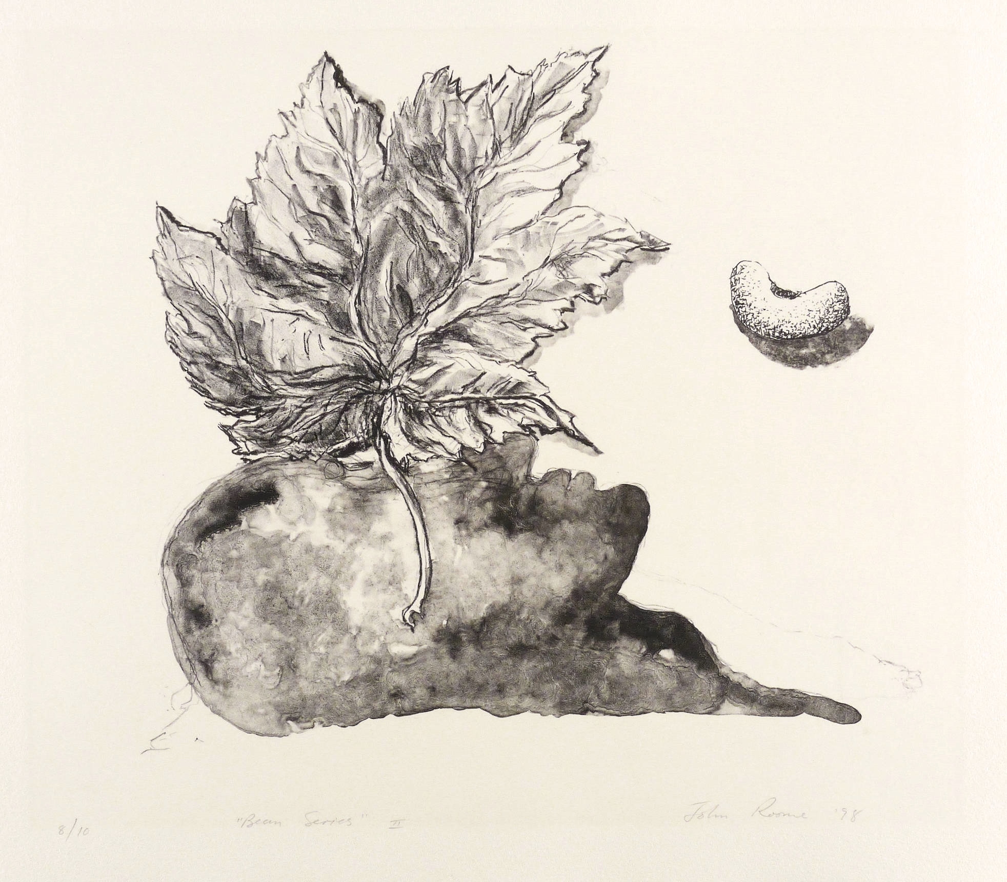 Rechts unten in Bleistift signiert und datiert: ″John Roome ’98″. Links eigenhändige Auflagenbezeichnung: ″Proof″. Mittig Titel: ″Bean Series II″. Trockenstempel des Steindruckers Michael Wackwitz. Wasserzeichen der Hahnemühle. – Sehr gutes Exemplar.