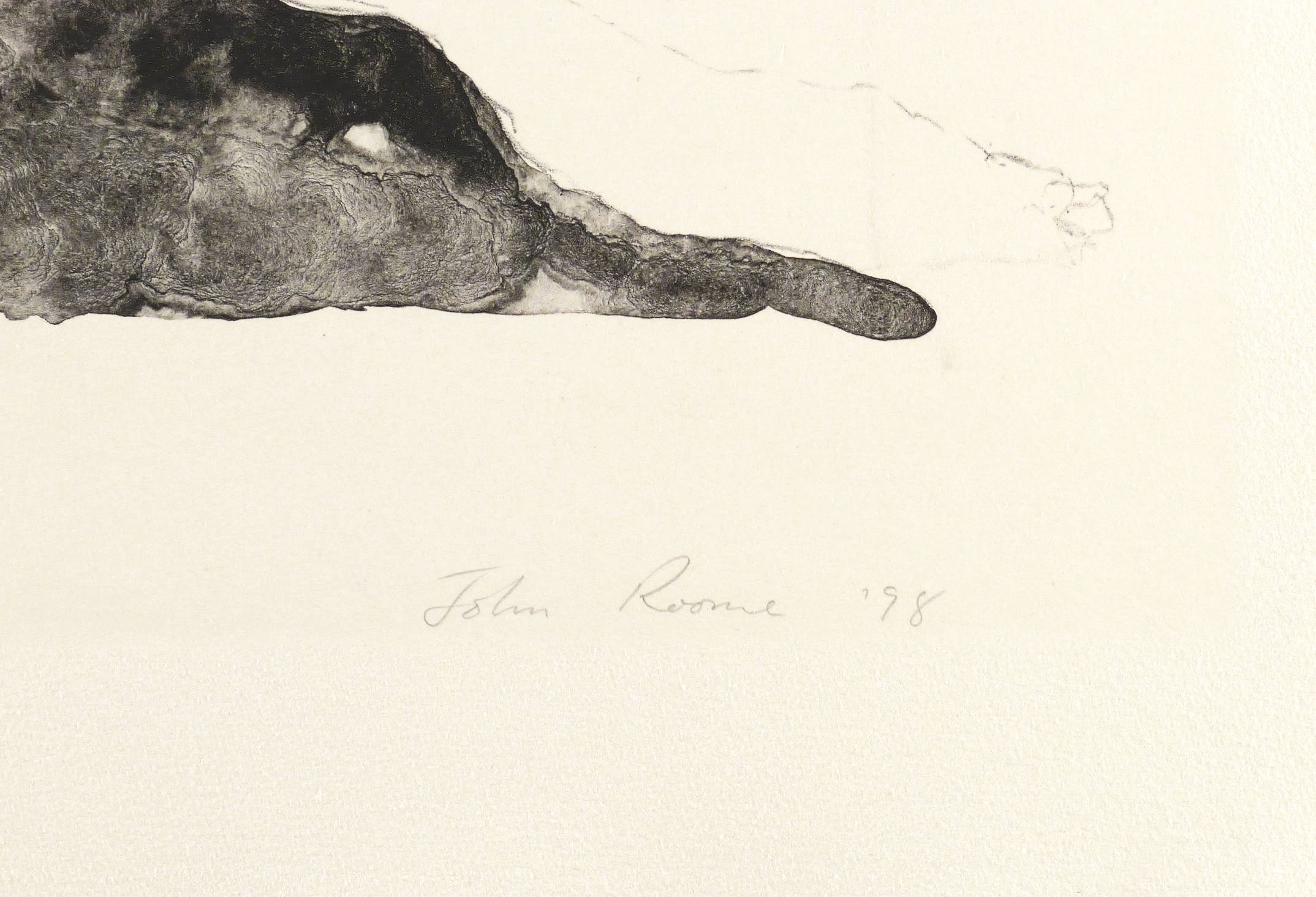 1998. Lithografie / Kreide- & Pinsellithografie, in Schwarz, auf schwerem chamois Hahnemühle. – Originale Künstlergrafik, von John Roome. – Probedruck. – 36,8 x 40,8 cm (Darstellung / Druckbild), 54 x 70 cm (Blatt).
