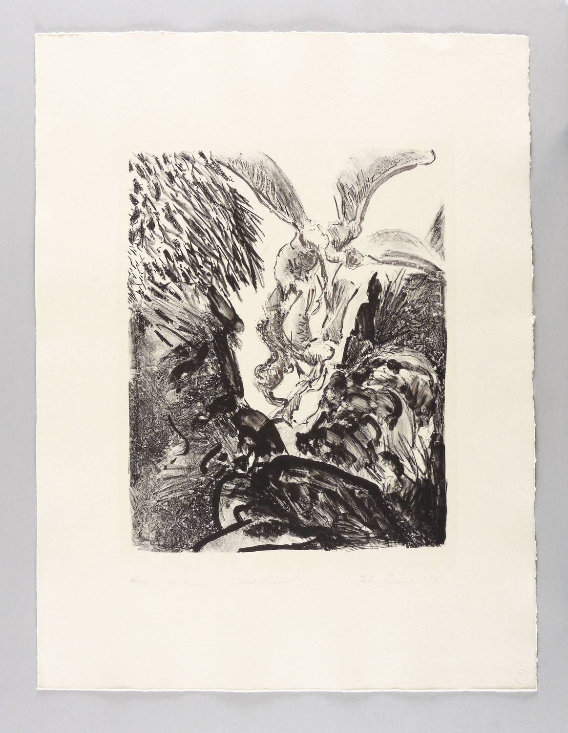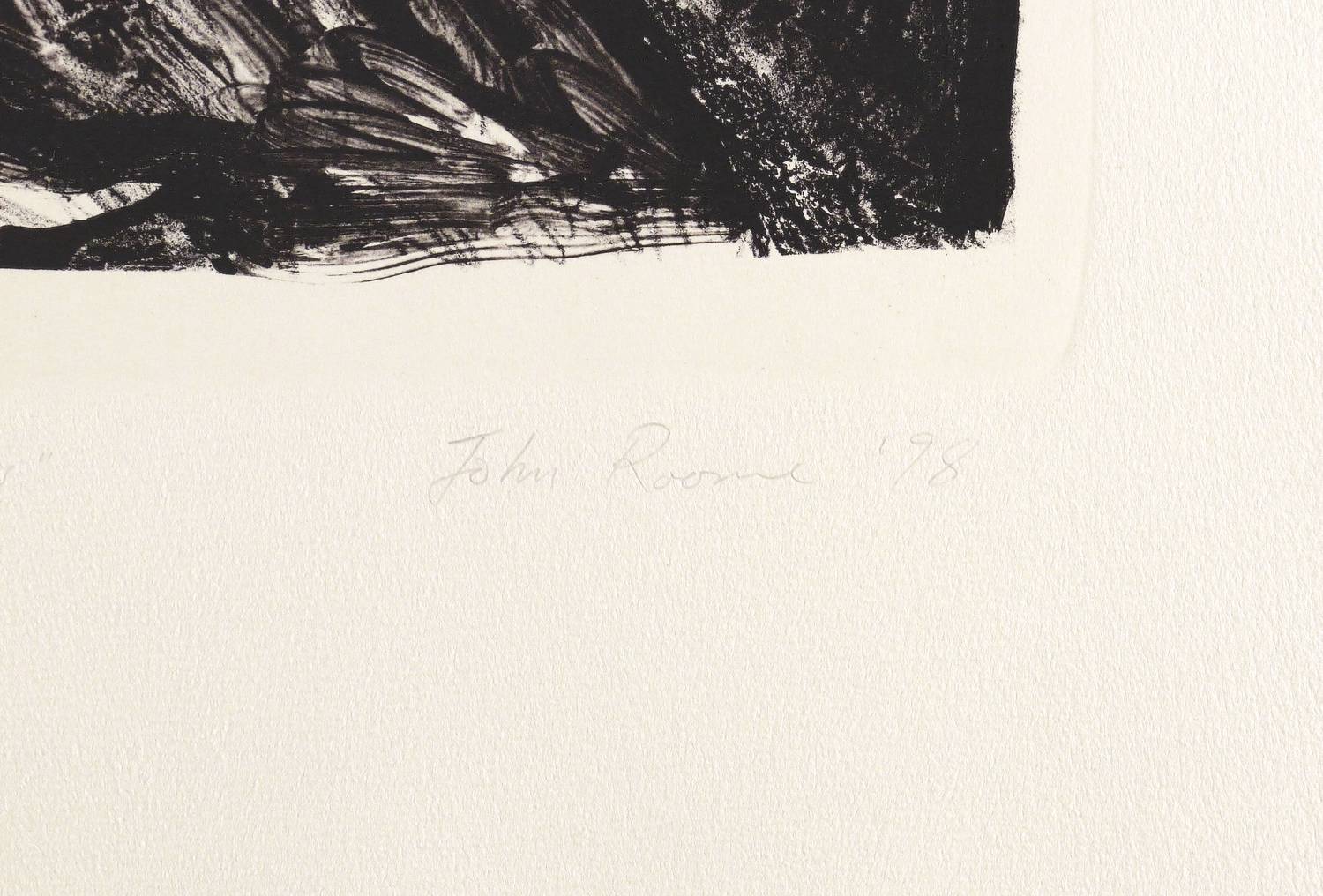 1998. Lithografie / Kreide- & Pinsellithografie, in Schwarz, auf schwerem chamois Hahnemühle. – Originale Künstlergrafik, von John Roome. – Probedruck. – 42,7 x 34,2 cm (Darstellung / Druckbild), 71 x 54 cm (Blatt).