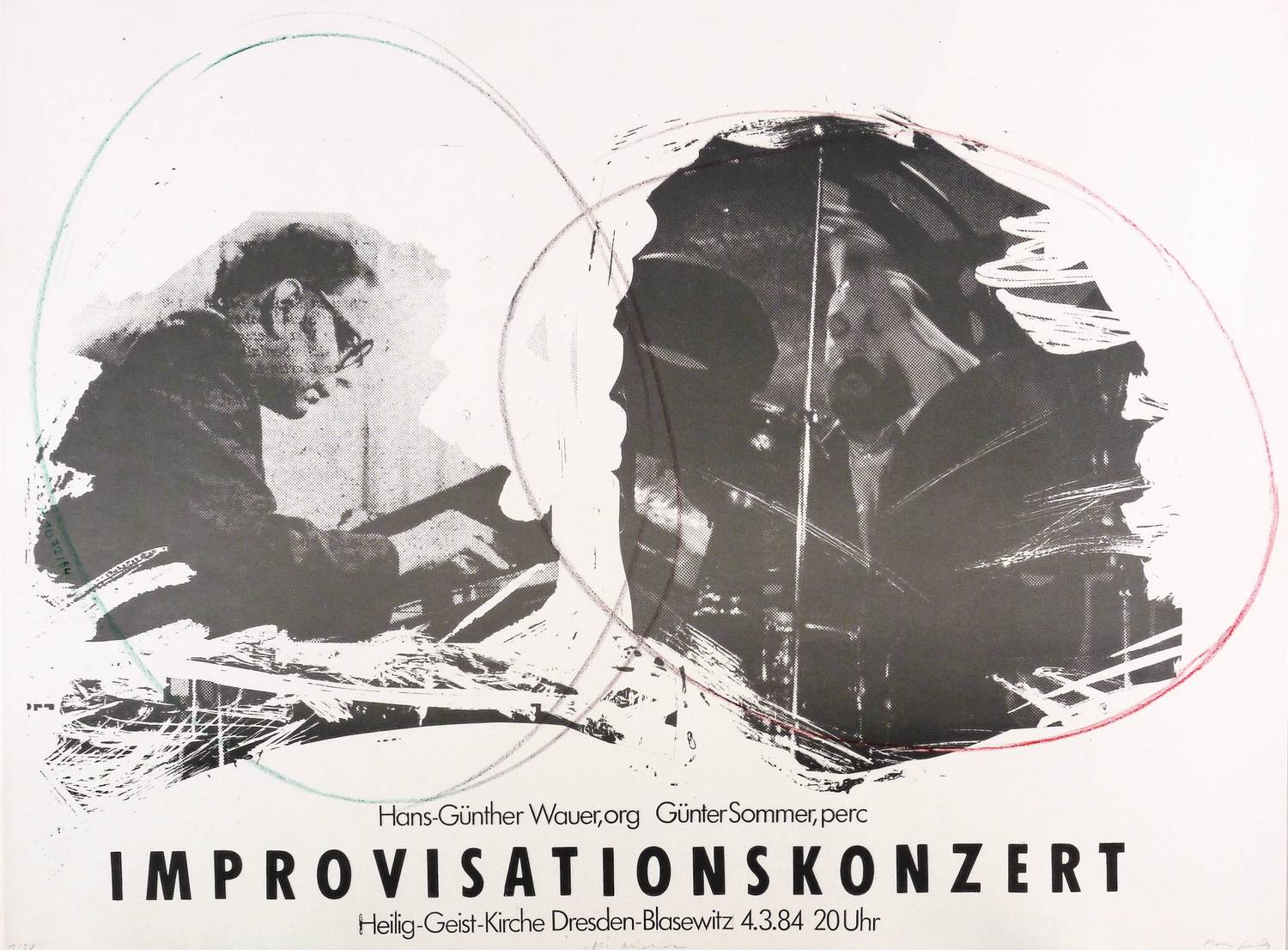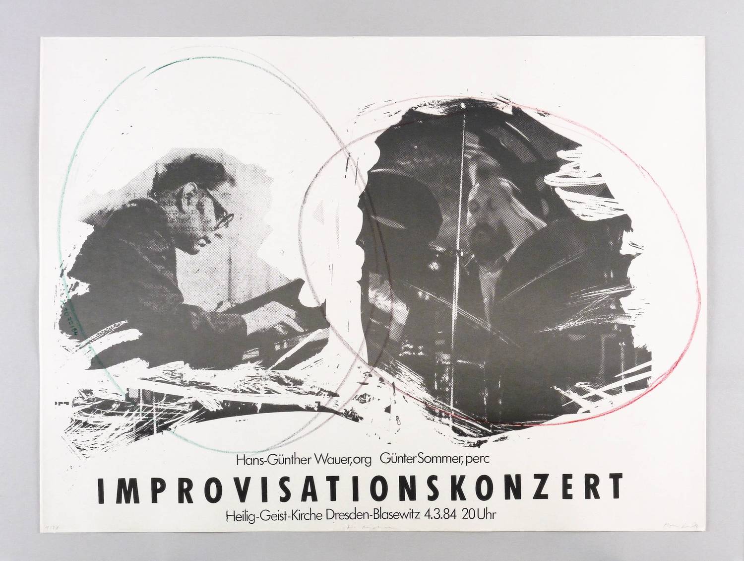 1984. Lithografie / Fotolithografie, in Schwarz, in Farbkreide überarbeitet, auf weißem Karton. – Originales Künstlerplakat, von Jürgen Haufe. – Auflage Exemplar Nr. 1/50. – 56,0 x 75,0 cm (Blatt).