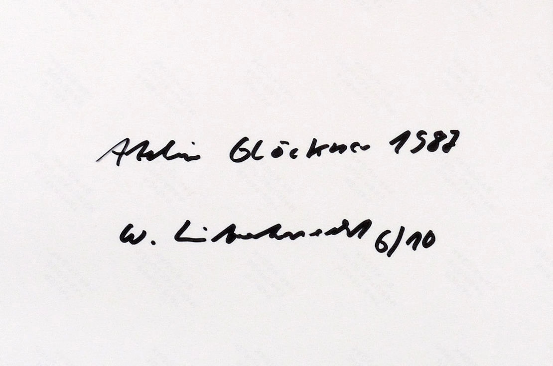 Verso in Faserstift signiert, bezeichnet und datiert: ″Atelier Glöckner 1987 / W. Lieberknecht″. – Aus der 1987 entstandenen Serie zu Hermann Glöckners Atelier im Künstlerhaus Loschwitz (Dresden). – Ohne Mangel. Hervorragend erhalten. Im Passepartout montiert.