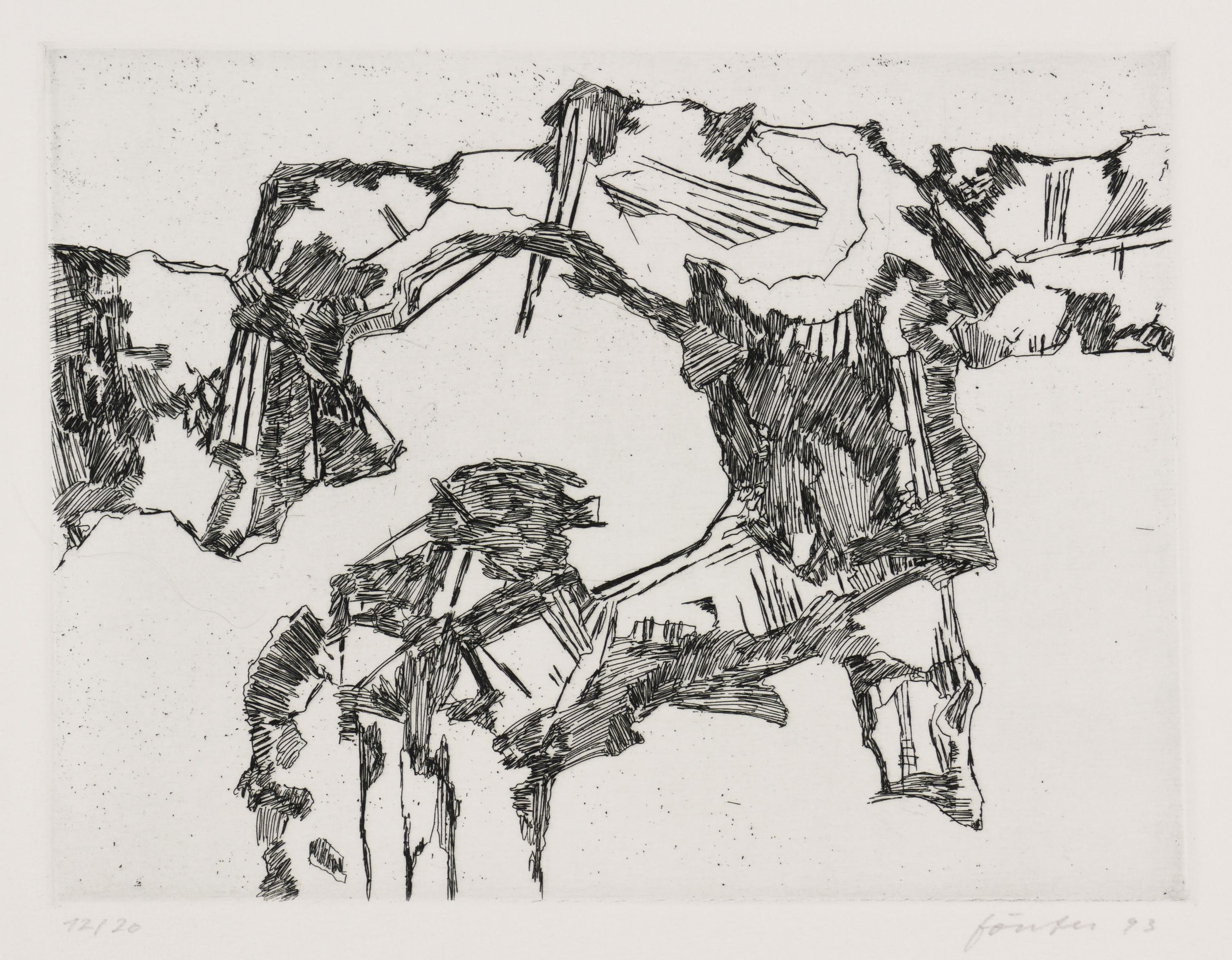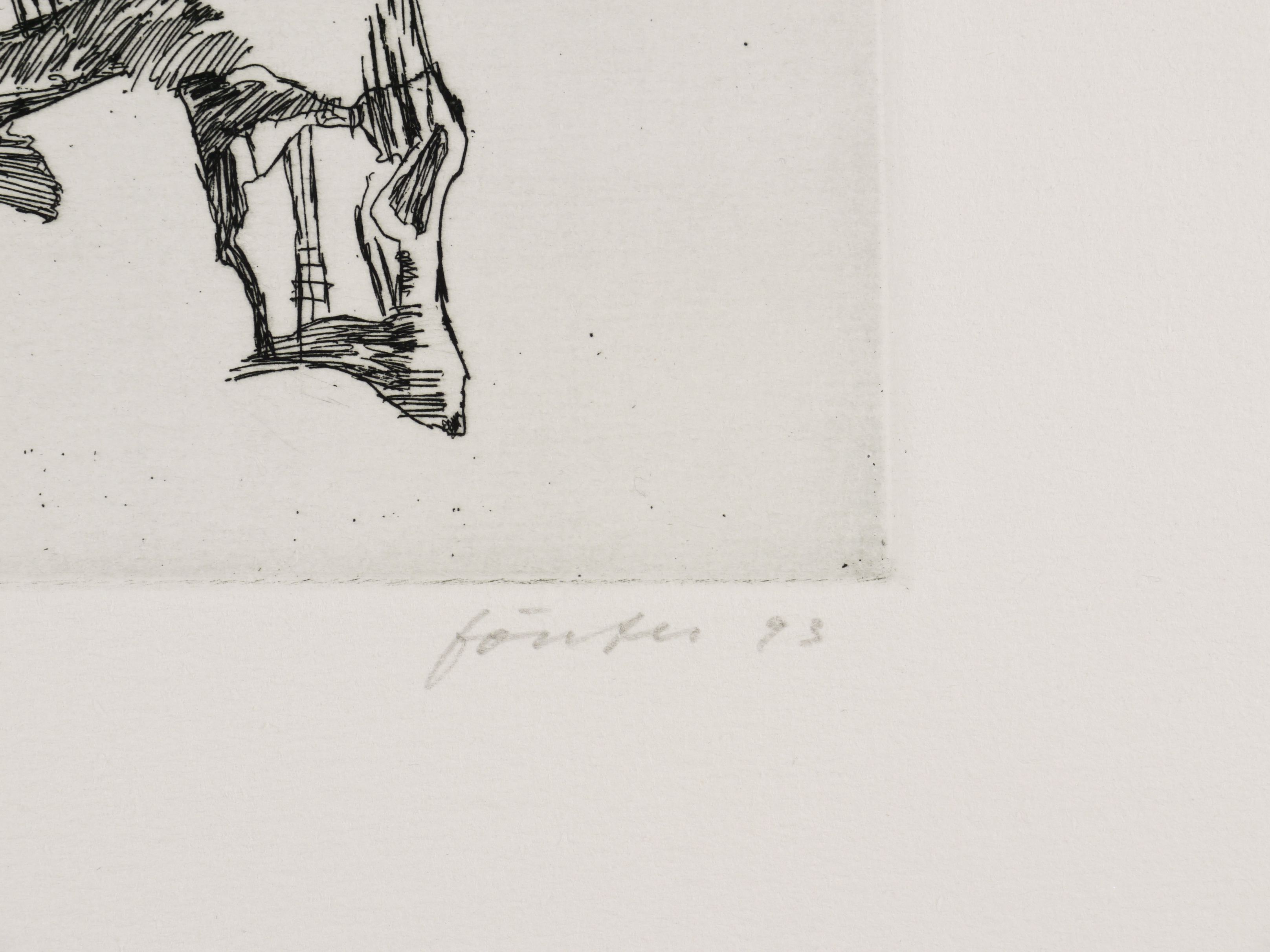 1993. Radierung / Strichätzung, in Schwarz, mit Plattenton, auf Büttenpapier. – Originale Künstlergrafik, von Wieland Förster. – Auflage Exemplar Nr. 12/20. – 15,8 x 21,0 cm (Darstellung / Platte), 35 x 39 cm (Blatt).