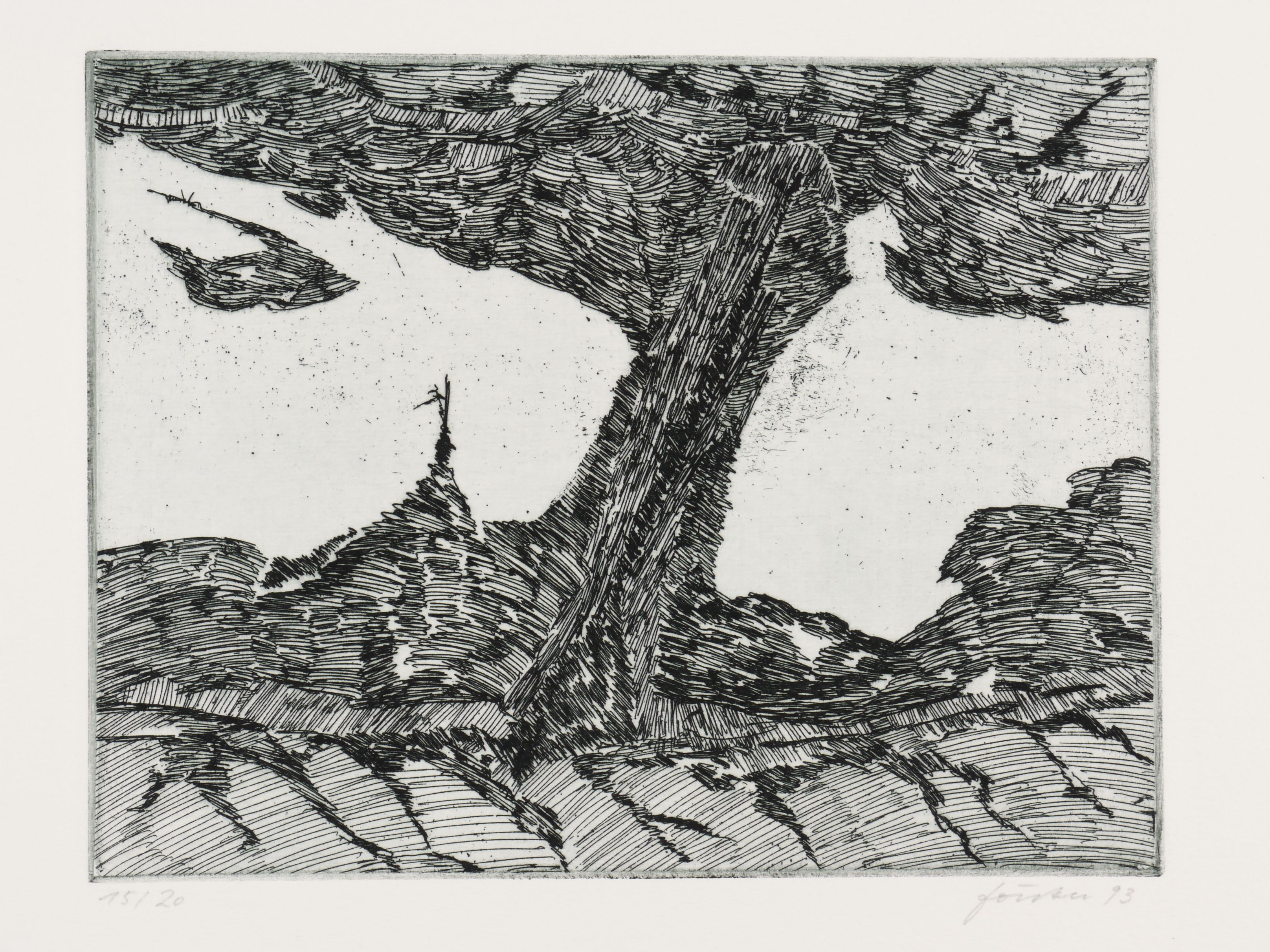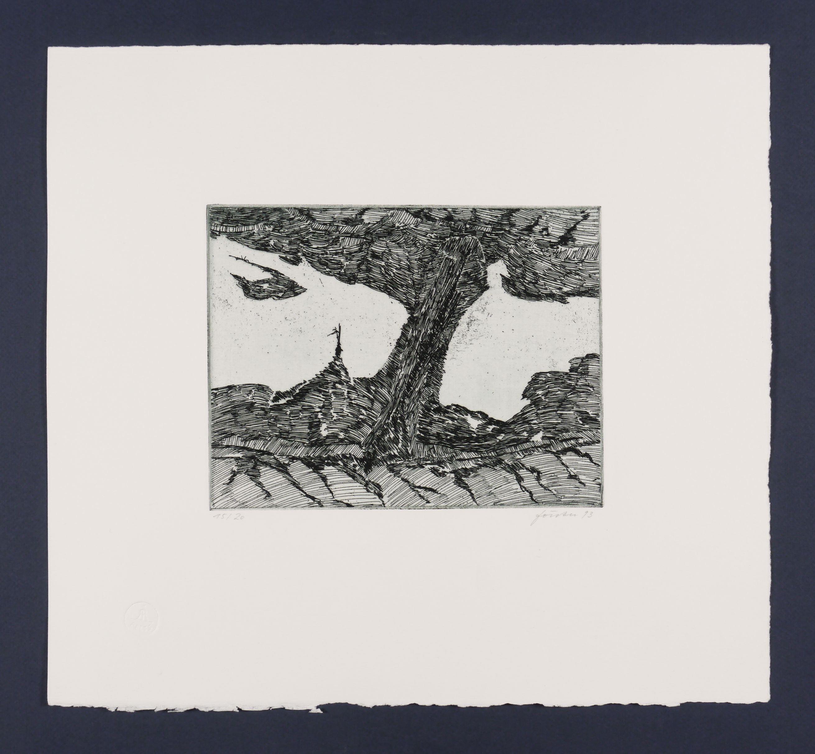 1993. Radierung / Strichätzung, in Schwarz, mit Plattenton, auf Büttenpapier. – Originale Künstlergrafik, von Wieland Förster. – Auflage Exemplar Nr. 15/20. – 16,4 x 21,3 cm (Darstellung / Platte), 36 x 39 cm (Blatt).