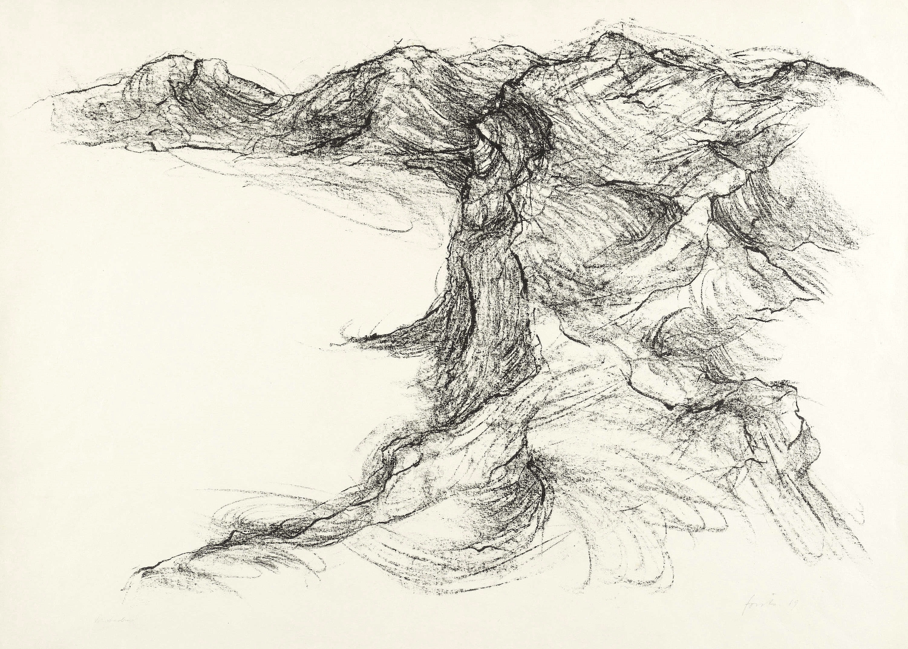 1969. Lithografie / Kreidelithografie, in Schwarz, auf gelblichem Maschinenpapier. – Originale Künstlergrafik, von Wieland Förster. – Probedruck. – 31,5 x 47,5 cm (Darstellung / Druckbild), 38 x 50 cm (Blatt).