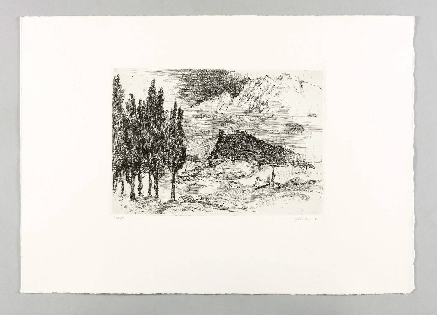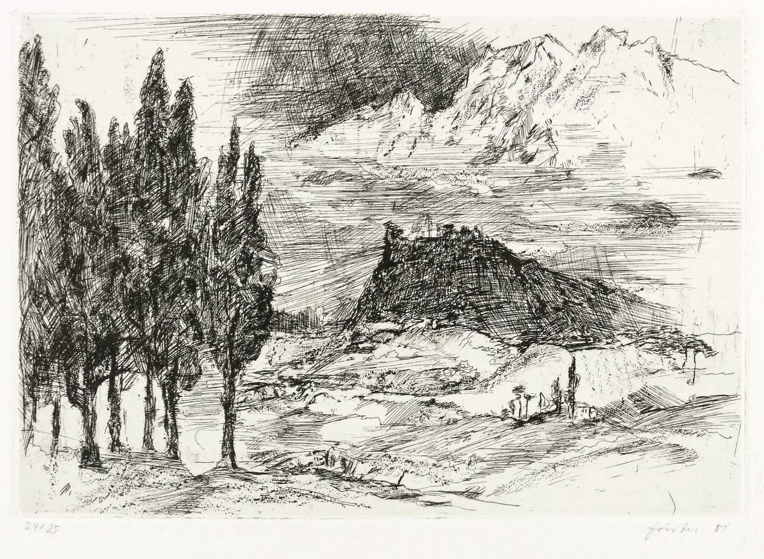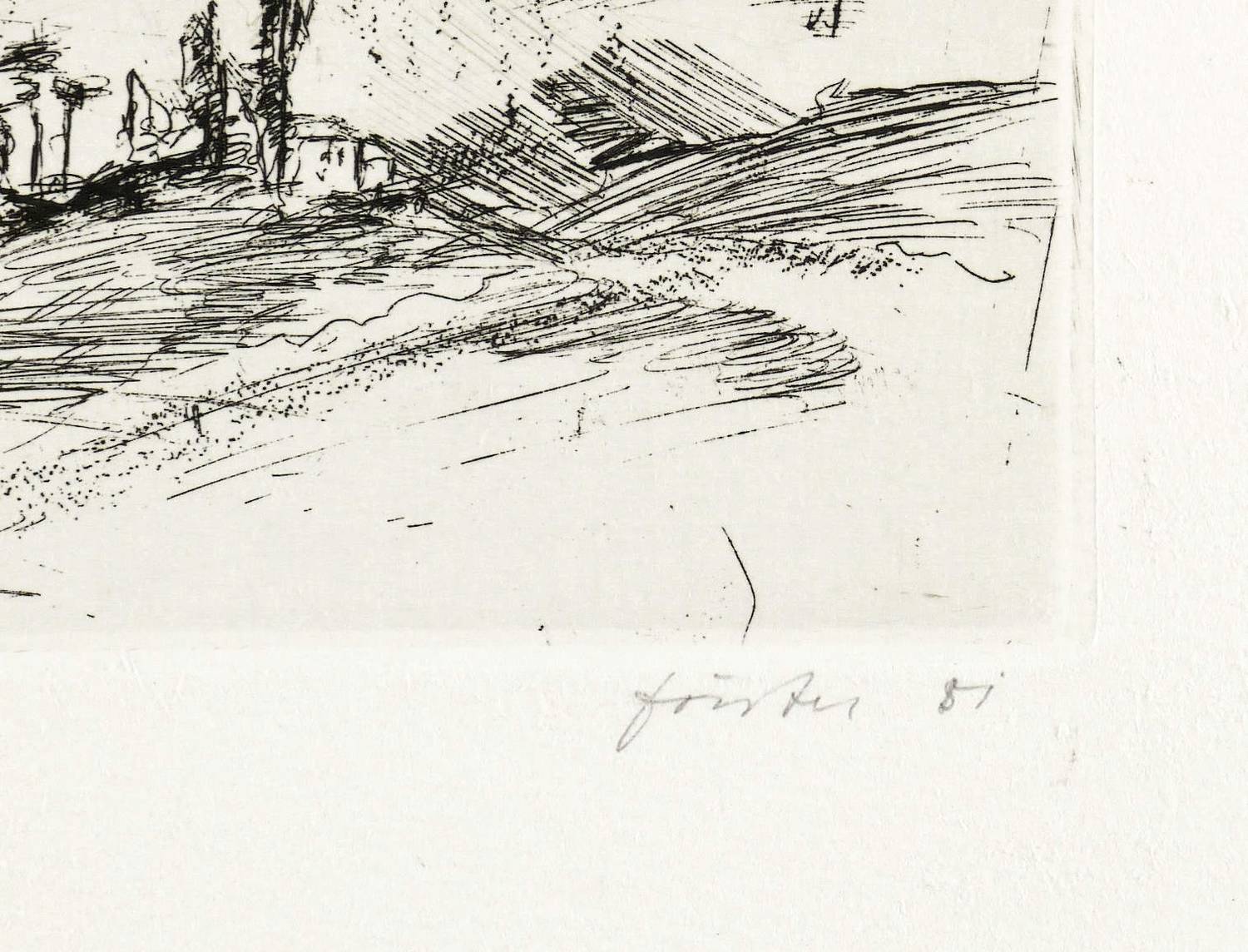 1981. Radierung / Strichätzung, in Schwarz, auf schwerem hellem Hahnemühle-Bütten. – Originale Künstlergrafik, von Wieland Förster. – Auflage Exmplar Nr. 24/25. – 18,4 x 26,4 cm (Darstellung / Platte), 34 x 48 cm (Blatt).