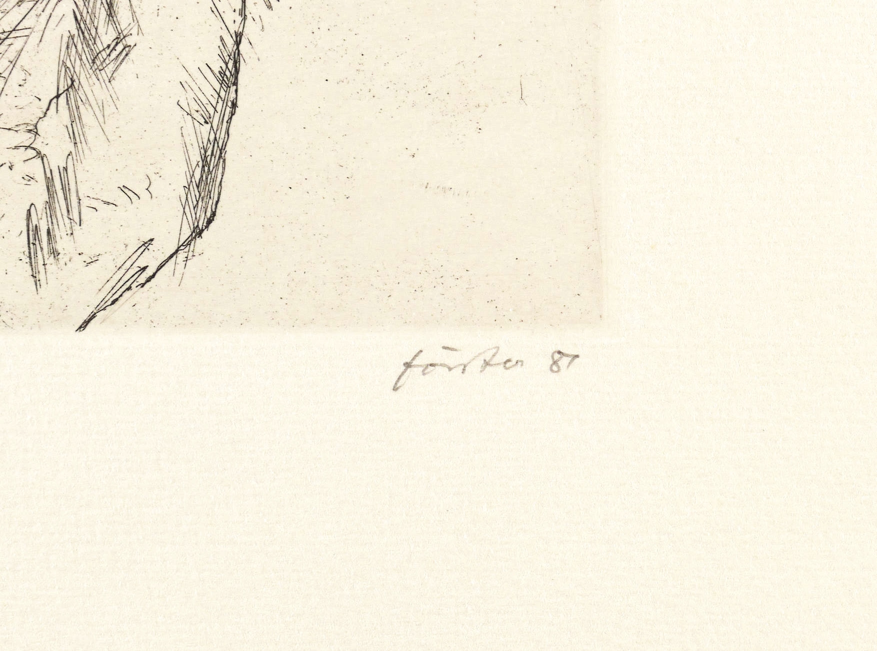 Rechts unten in Bleistift signiert und datiert: ″förster 81″. Links Auflagenbezeichnung. Trockenstempel der Grafik-Edition. In der Platte am rechten Rand oben spiegelverkehrt Datum: ″28. VI. 81″. – Sehr guter Zustand.