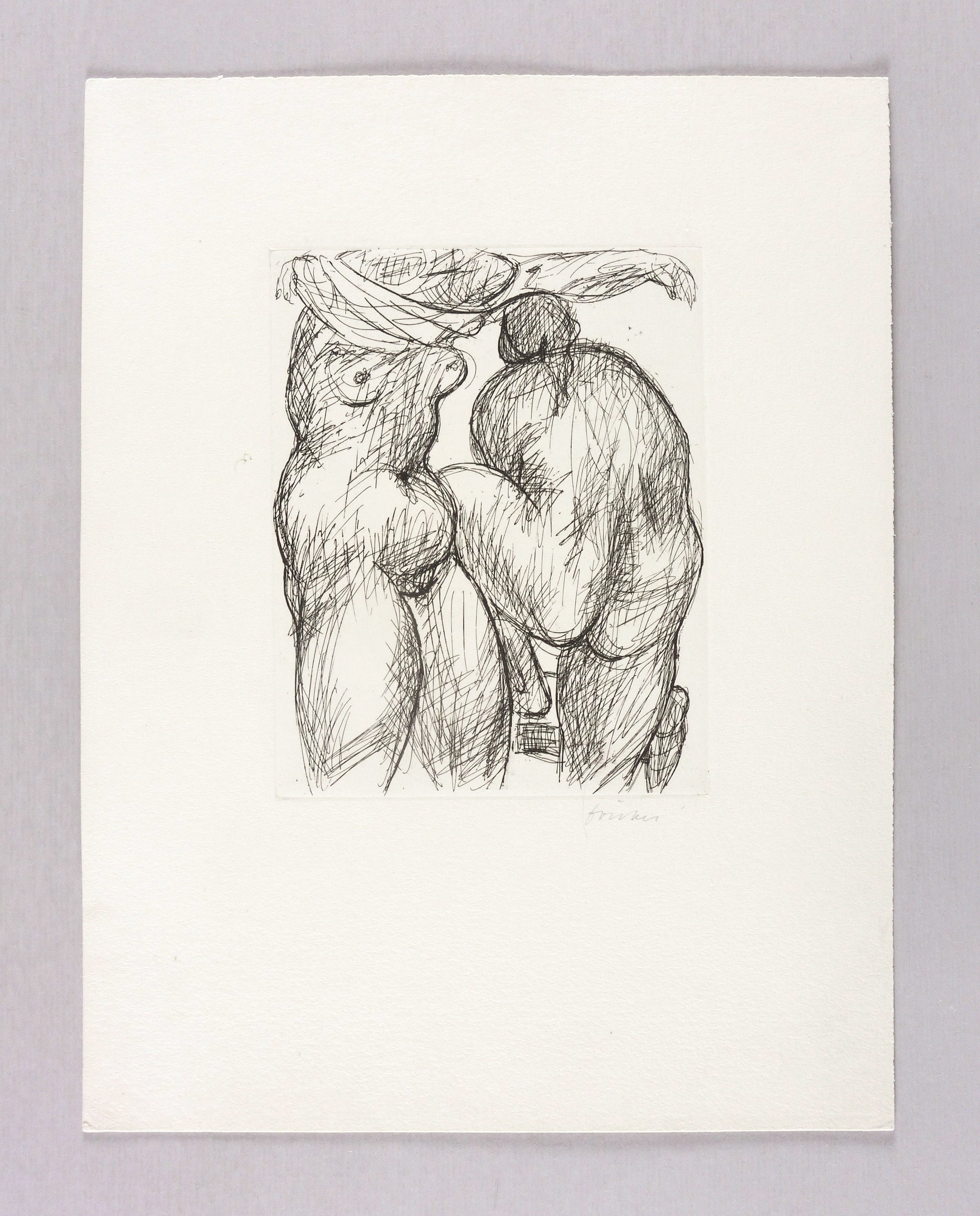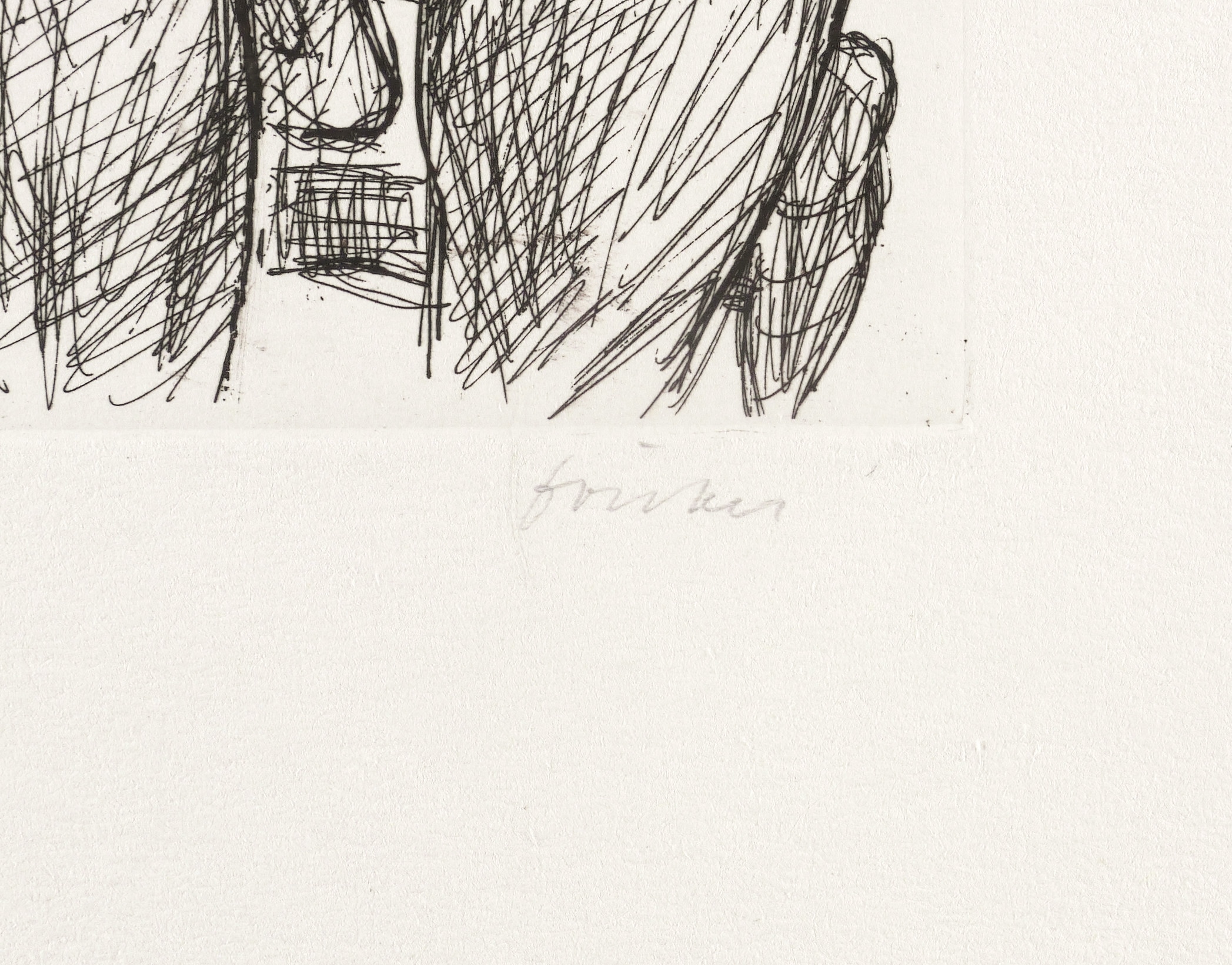 Um 1965. Radierung / Strichätzung, in Schwarz, auf chamois Velinkarton. – Originale Künstlergrafik, von Wieland Förster. – 17,2 x 13,5 cm (Darstellung / Platte), 33 x 26 cm (Blatt).