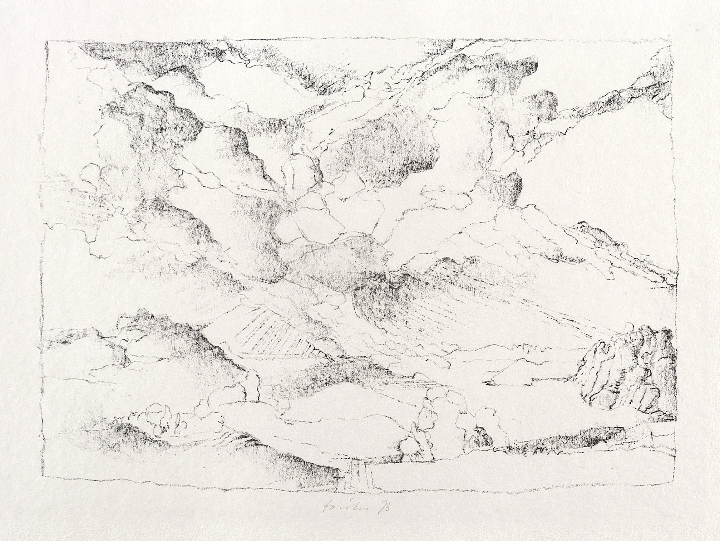 1973. Lithografie / Kreidelithografie, in Schwarz, auf hartem hellchamois Weißenborn. – Originale Künstlergrafik, von Wieland Förster. – 20,9 x 29,4 cm (Darstellung / Druckbild), 39 x 50 cm (Blatt).