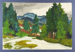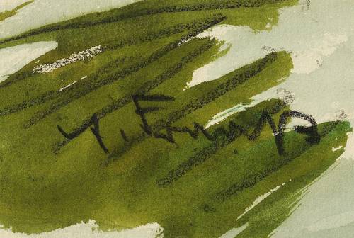 Um 1946. Zeichnung / Aquarell, auf Büttenkarton. – Originale Künstlergrafik, von Erich Fraaß. – Unikat. – 38,8 x 58,2 cm (Darstellung / Blatt).