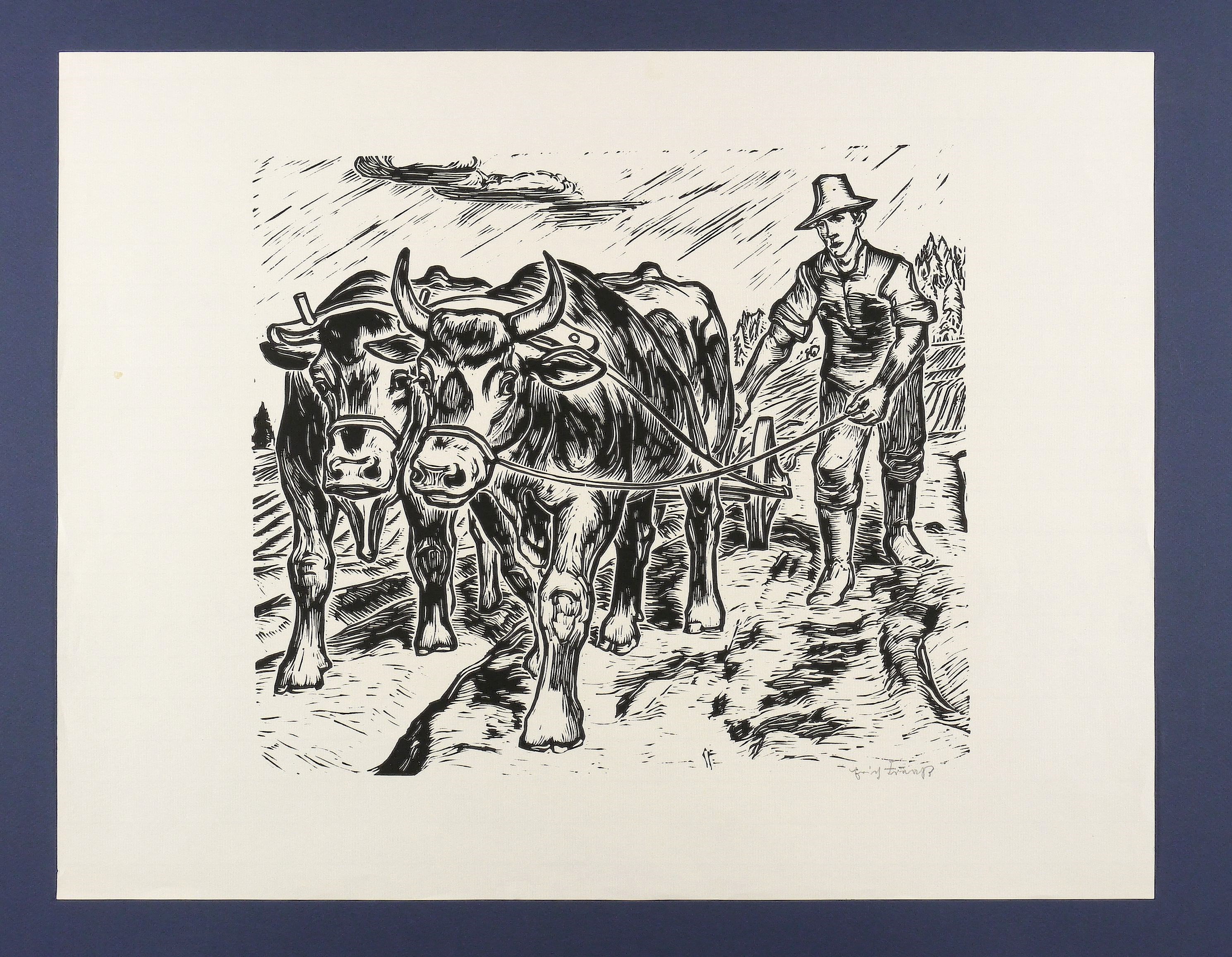 Fraaß, Erich. – „Bauer mit Ochsenpflug”.