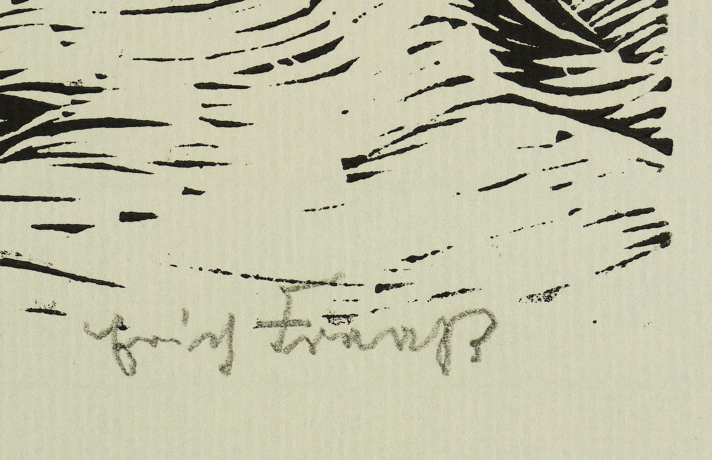 1938/1939. Linolschnitt, in Schwarz, auf hellem Velin. – Originale Künstlergrafik, von Erich Fraaß. – 36,0 x 41,5 cm (Darstellung / Druckstock), 50 x 64 cm (Blatt).
