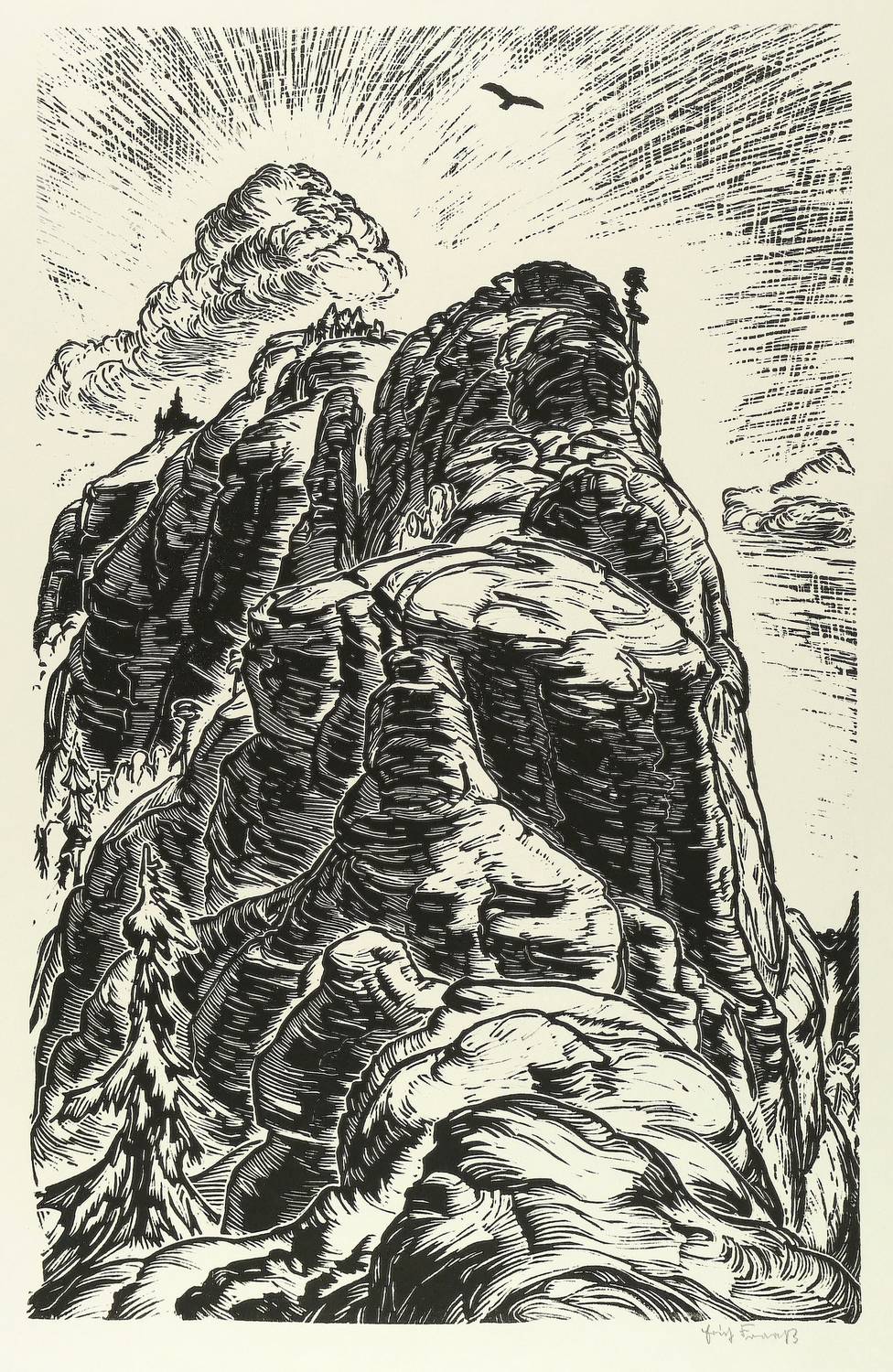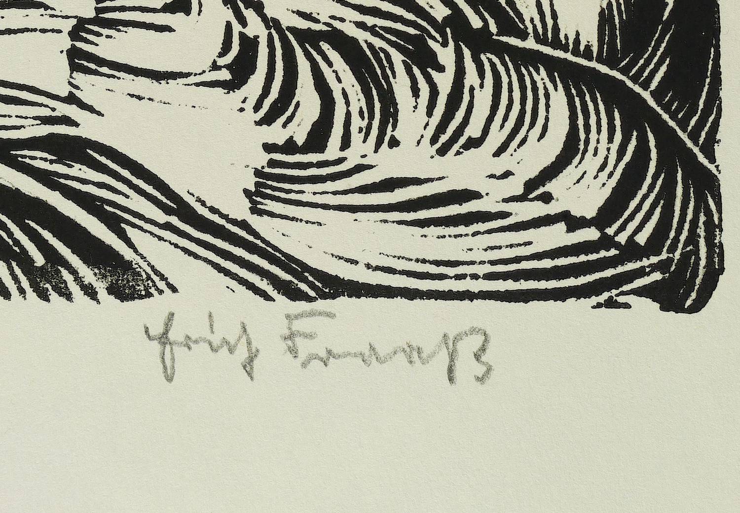 1938/1939. Linolschnitt, in Schwarz, auf hellem Velinkarton. – Originale Künstlergrafik, von Erich Fraaß. – Unikat. – 63,0 x 40,0 cm (Darstellung / Druckstock), 75 x 50 cm (Blatt).