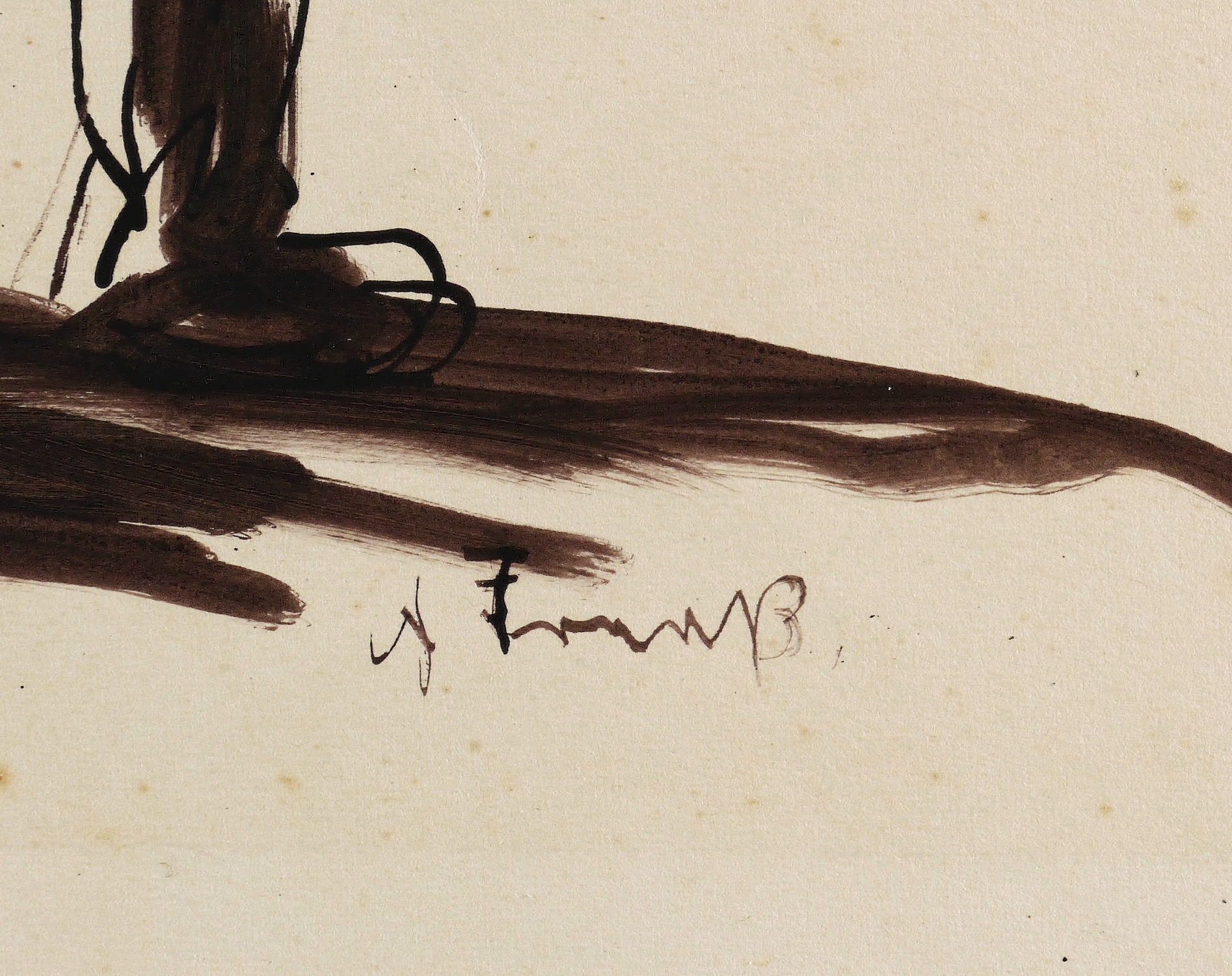 1925. Zeichnung / Feder- & Pinselzeichnung, in brauner Tusche, auf hellgelbem Velin. – Originale Künstlergrafik, von Erich Fraaß. – Unikat. – 34,1 x 42,5 cm (Darstellung / Blatt).