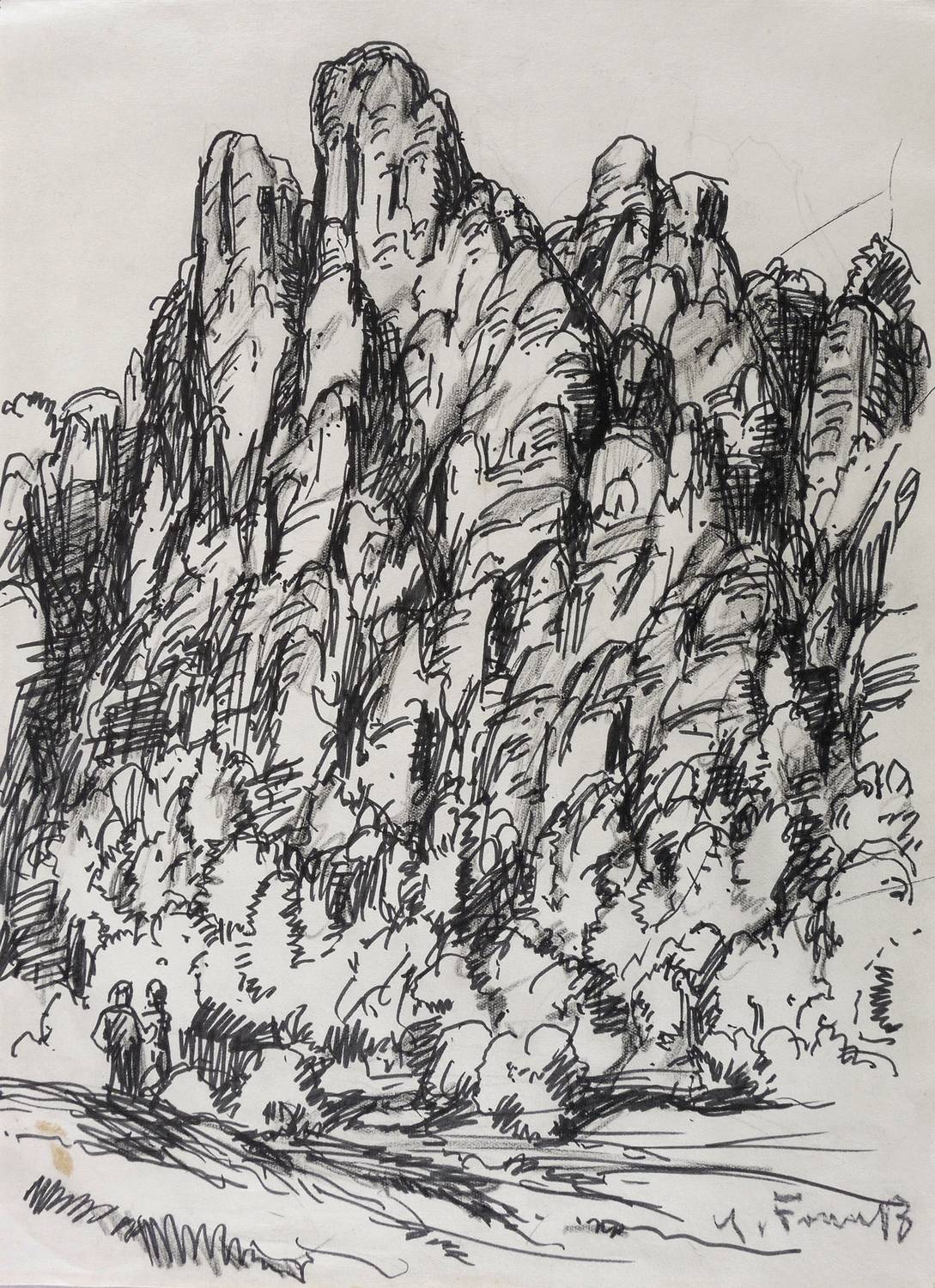 1954. Zeichnung / Graphit & Faserstift, in Schwarz, auf leichtem hellem Velin. – Originale Künstlergrafik, von Erich Fraaß. – Unikat. – 27,0 x 19,5 cm (Darstellung / Blatt).