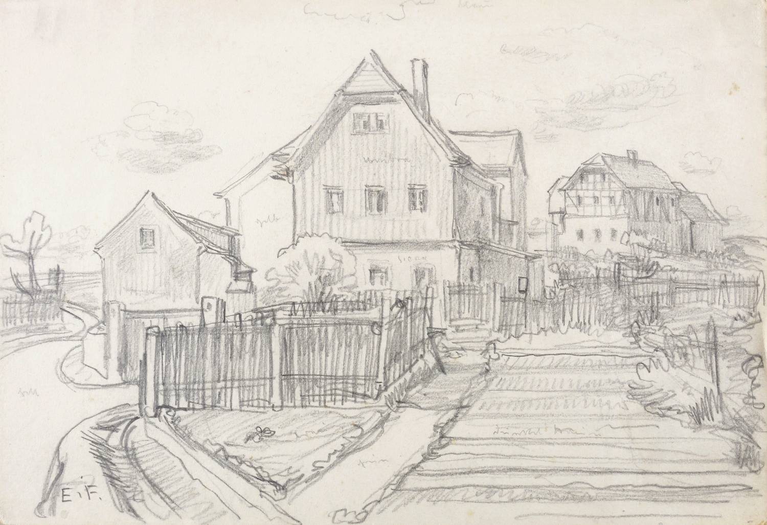 Links unten in Bleistift signiert: ″E.F.″ Verso in Bleistift bezeichnet: ″Moritzburg um 1952″. – Sehr guter Zustand.
