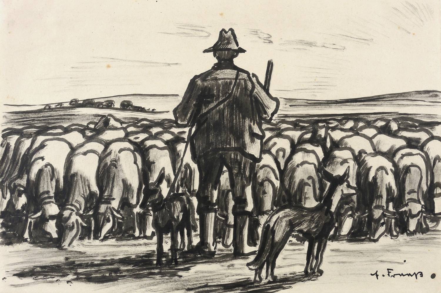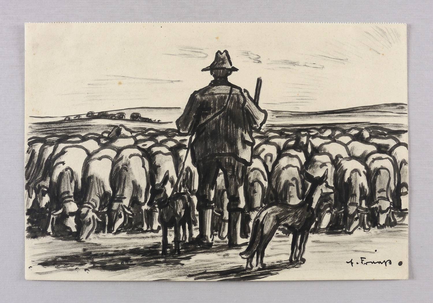 Fraaß, Erich. – „Schäfer mit Herde”.